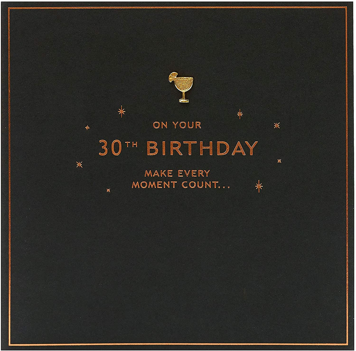 Raise a toast on their 30th birthday with this special hand finished card, featuring a cocktail charm and copper foil throughout. Editorial inside reads: because that's what special birthdays are for Happy 30th Birthday Envelope included. Size: 186 x 186mm.