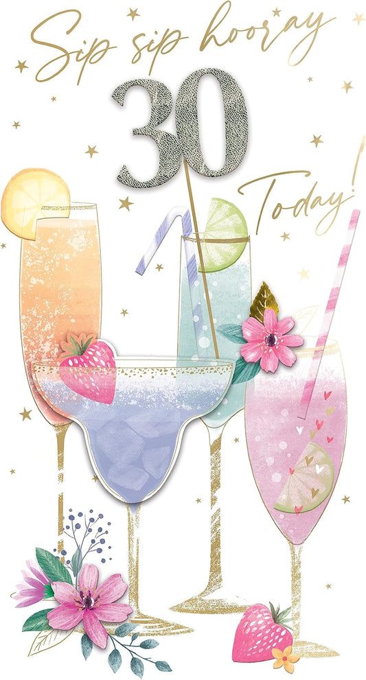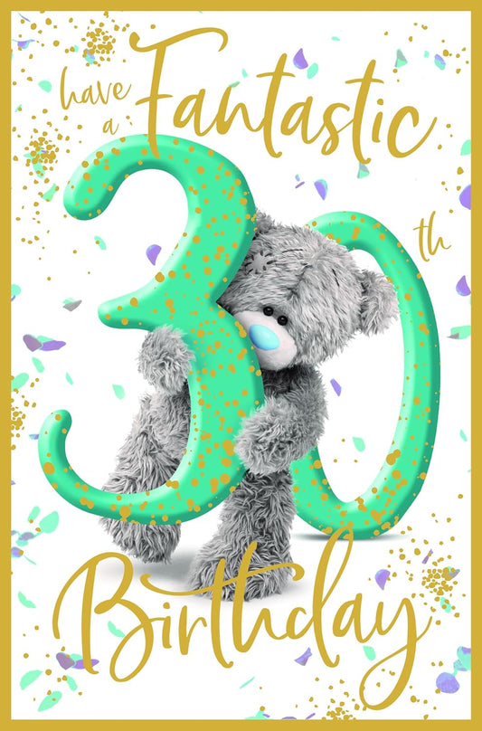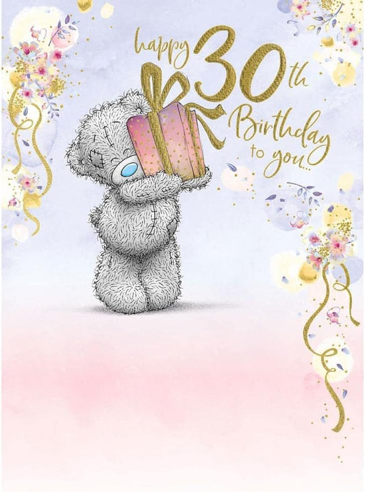 FUN 30th BIRTHDAY CARD - This gorgeous design is perfect for sending 30th birthday wishes to friends or family on their special day FEATURING ICONIC TATTY TEDDY - The photo-real image shows Tatty Teddy peeking out from the number forty, with a backdrop of confetti and delicate gold flitter to add extra sparkle CARD MEASUREMENTS - this top quality card measures 5 x 8 inches and an envelope is included THOUGHTFUL WORDS - Cover message: Have a fantastic 30th birthday. Inside message: Enjoy every moment of your special day! With love.