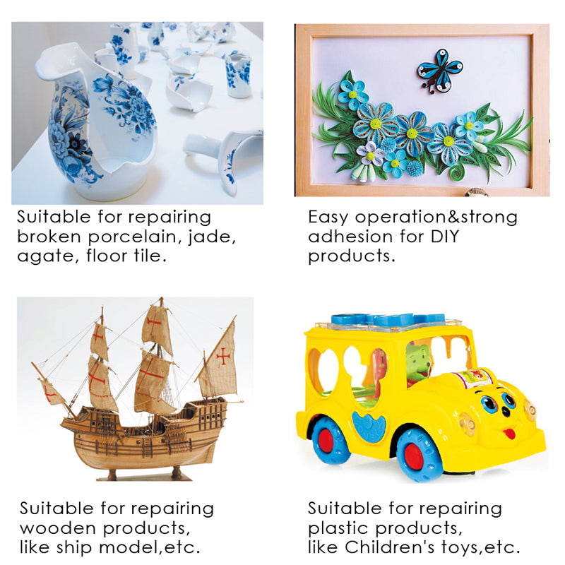 Silicone liquid glue 100ml. Strong adhesion & easy operation, Non-toxic & environmental, Dry quickly, transparent material to make excellent looking after using. Suitable for repairing broken porcelain, jade, agate, floor tile. Easy operation & strong adhesion for DIY products. Suitable for repairing wooden products, like ship, model, etc. Suitable for repairing plastic products, like children's toys, etc. This glue is a handy solution for various DIY projects and repairs, providing both convenience and reliability.