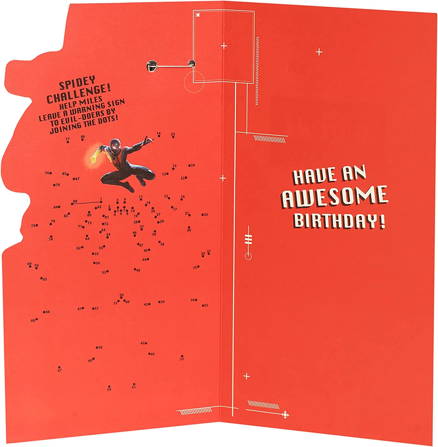 Wish a Spider-Man fan an amazing 7th birthday with this Marvel card, which comes with a brilliant badge to wear and a join-the-dots challenge! Inside Message Reads: Have an awesome Birthday! Card Size: 121mm x 229mm. Envelope Included.