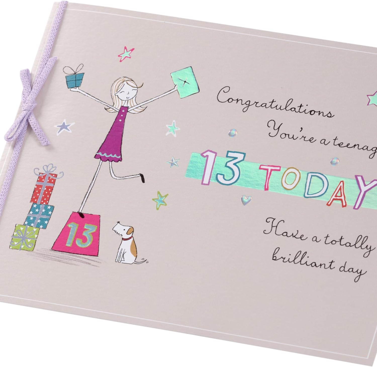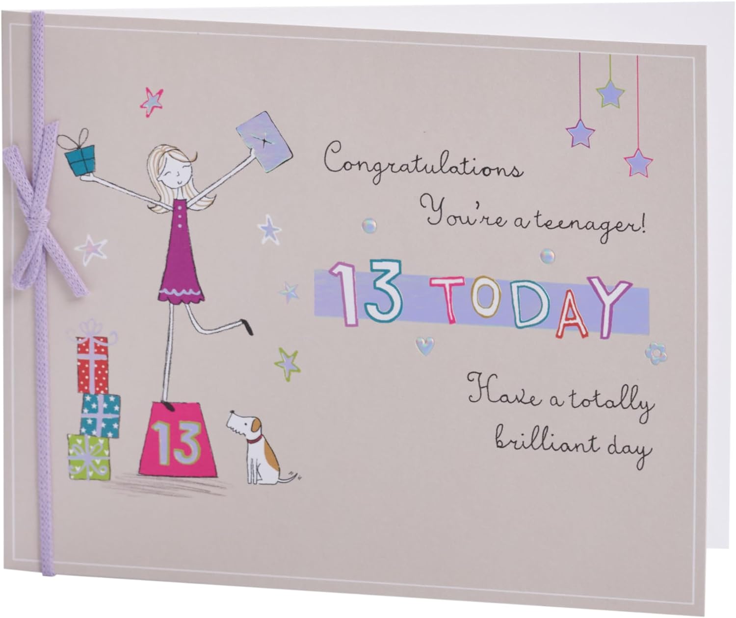 Wish a special teenage girl a happy 13th birthday with this lovely card, which is printed on premium quality board and finished with embossed silver foil accents and a ribbon. Message Inside Reads: Congratulations on your 13th Birthday. Card Size: 195mm x 149mm. Envelope Included. This product is FSC-labelled, meaning you’re supporting responsible forestry and helping fight climate change, protect biodiversity, and support communities.