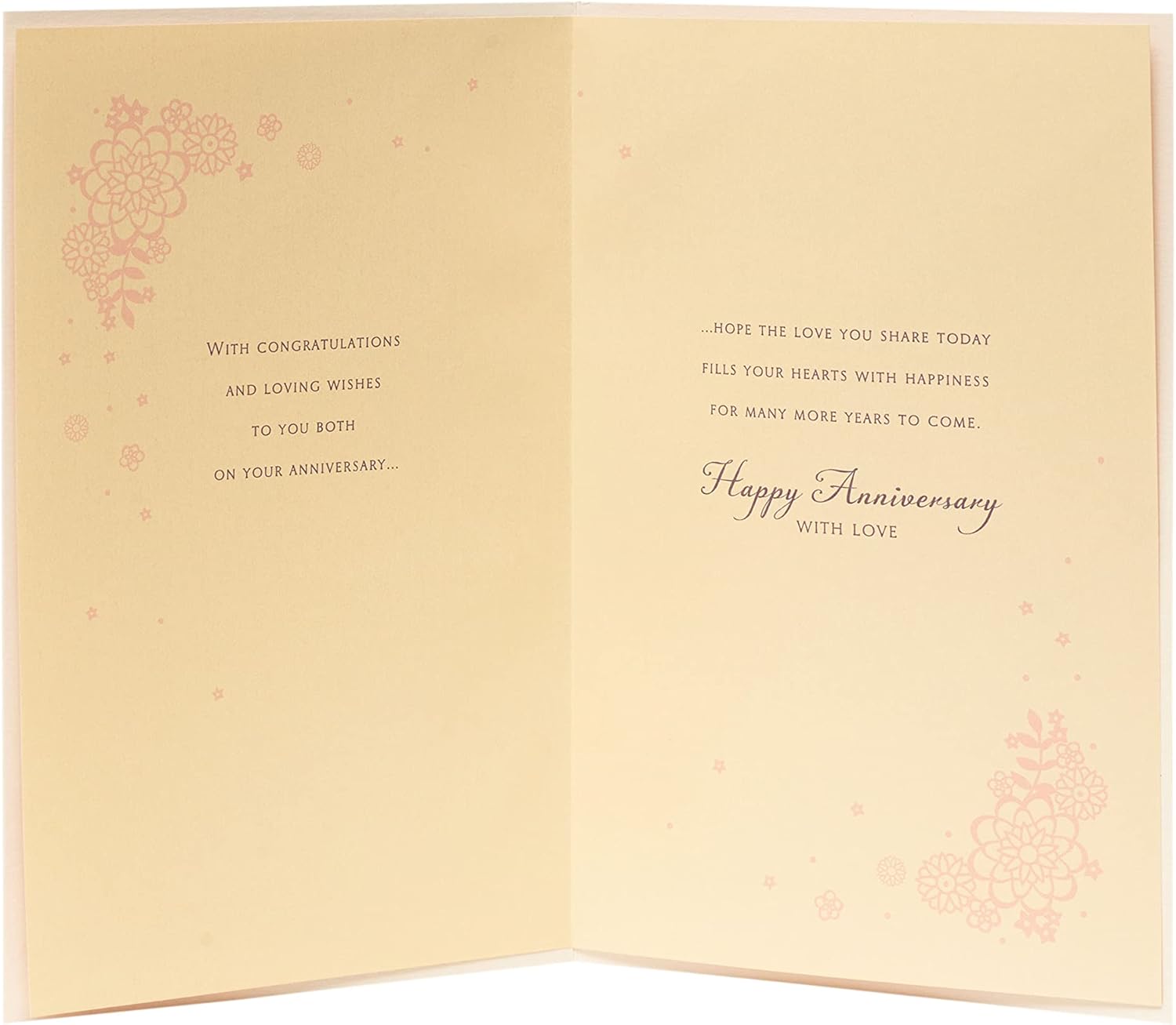 Send happy anniversary wishes to a special couple with this beautiful laser cut floral card, printed on premium quality board with a shimmering pearlescent finish. Message Inside Reads: ...hope the love you share today fills your hearts with happiness for many more years to come. Happy Anniversary With Love Card Size: 149mm x 229mm