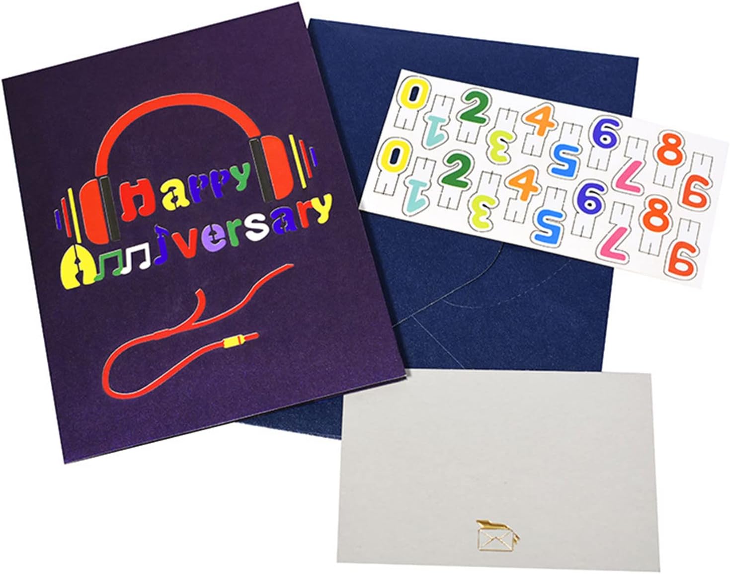 Music Party 3D Pop Up Anniversary Card with Personalized Numbers