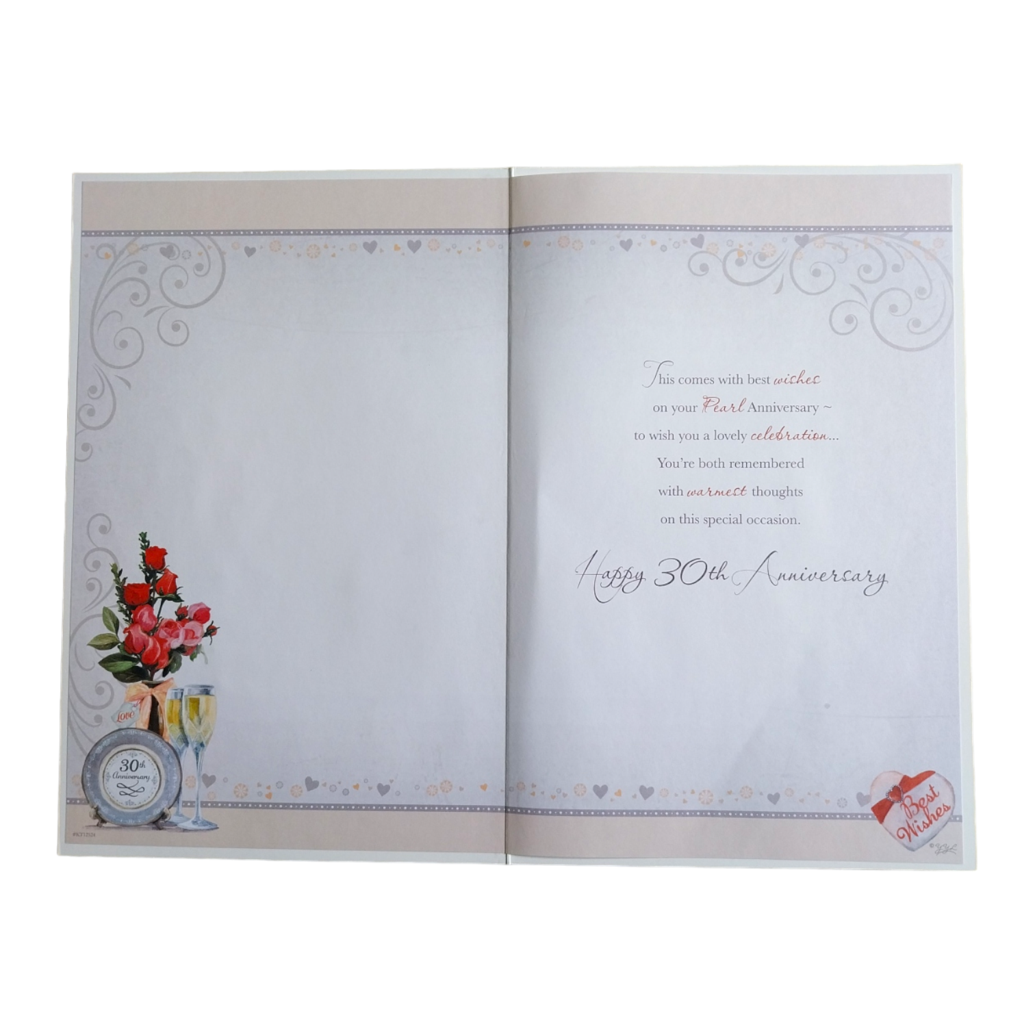 Pearl Anniversary Keepsake Treasures Congratulations Card. Stunning design with luxury finishes with detachable plastic keepsake attachment. Approx Size: 270 x 185mm.