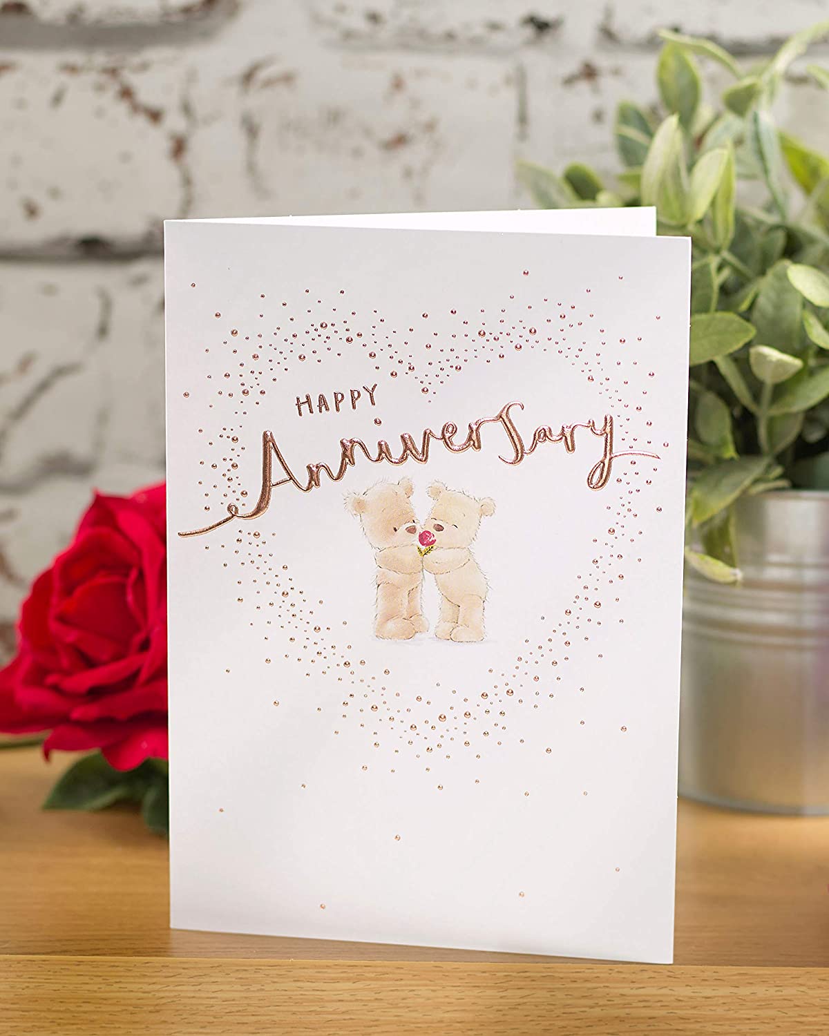 This sweet Nutmeg anniversary card is the cutest way to send them your congratulations on another year of happy marriage. Editorial inside reads: It's so special to see you celebrate another year of happy memories together! Congratulations. anniversary card. Envelope included. Card size: 140mm x 195mm