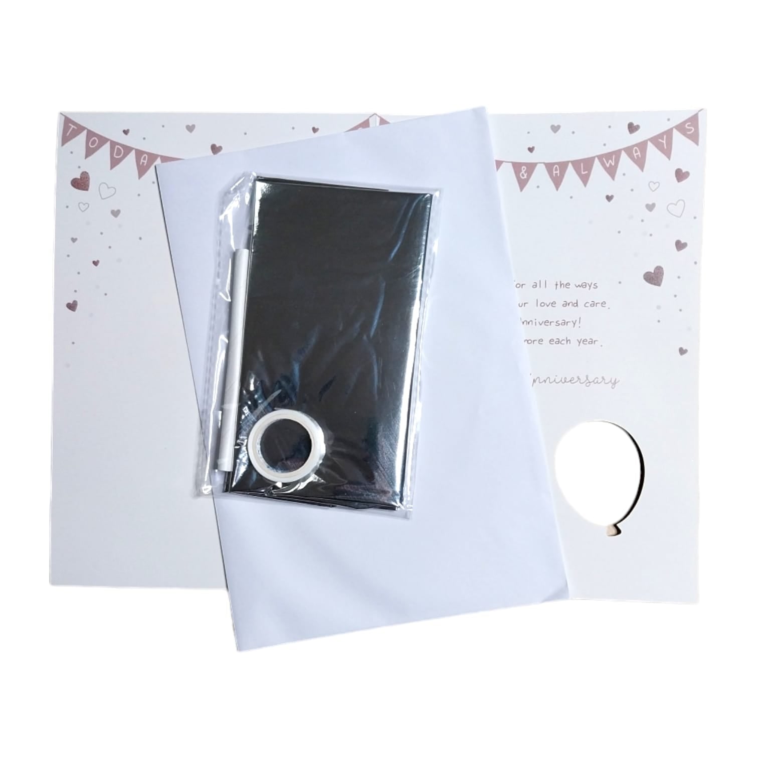 Celebrate the love that has blossomed over the years with our "With Love to my Husband Happy Anniversary" Balloon Boutique Greeting Card. Crafted with contemporary flair and adorned with foil finishing, this card is a testament to the enduring bond between soulmates. Three stunning foil balloons, each one representing a cherished moment shared between you and your beloved. These balloons are designed for air fill only and are not suitable for helium use. We've included a convenient straw for easy inflation, as well as 2 meters of ribbon for hanging your balloons in a place of honor. Size of card 230x150mm. With its elegant design and thoughtful contents, this card is the perfect way to convey your love and appreciation on your anniversary.