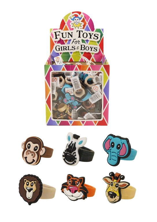 Jungle Animal Ring. These fun and colourful rings make ideal party favours, lucky dip prizes and loot bag fillers. Made from soft silicone. Size: 2 x 3 cm. 6 assorted designs available. One random design will be supplied.