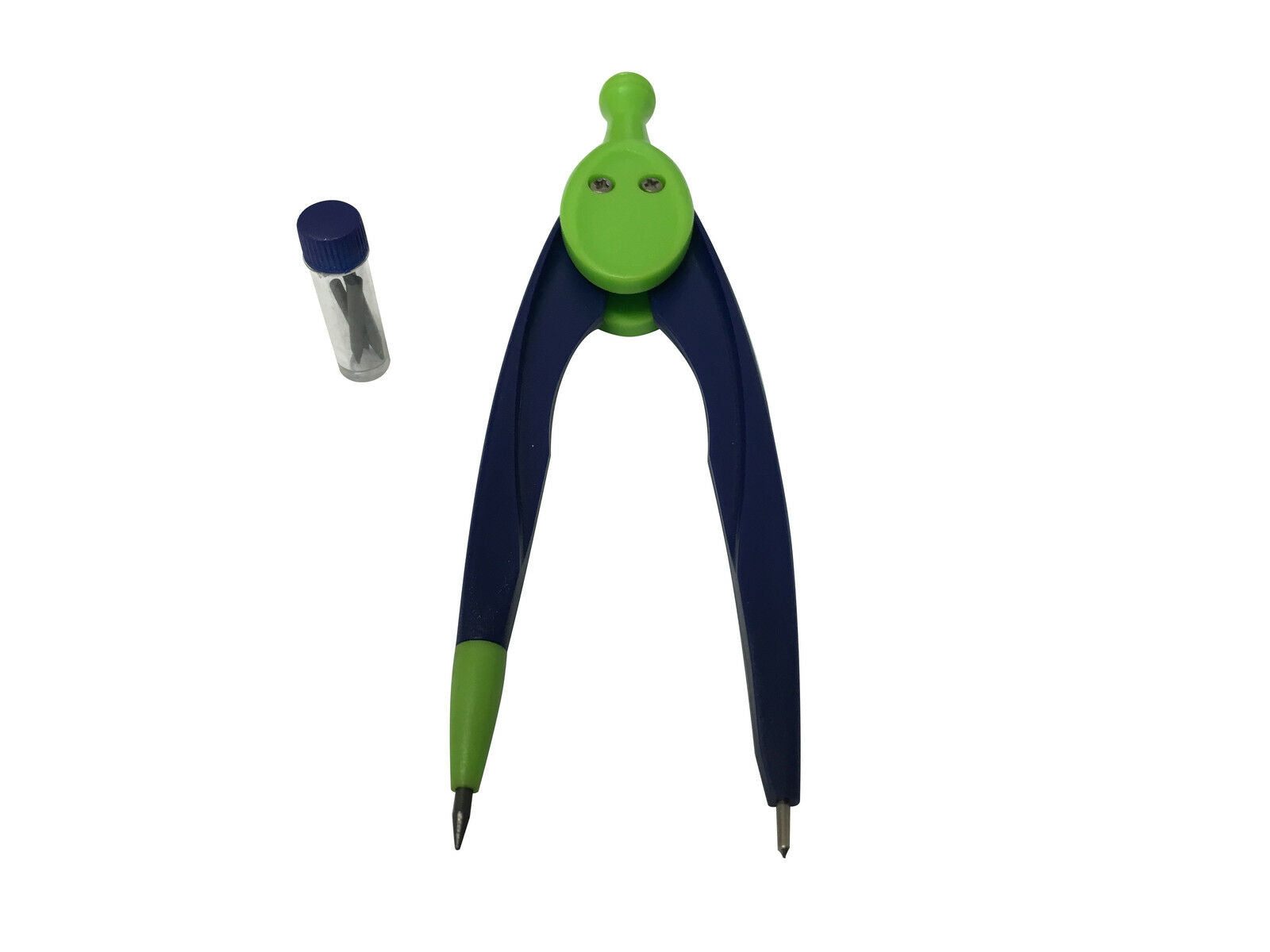 Janrax Plastic Adjustable Lead Compass with Refillable Leads. Includes replacement leads in closeable tube. Ideal for school, exams, maths, etc. Self centring mechanism.