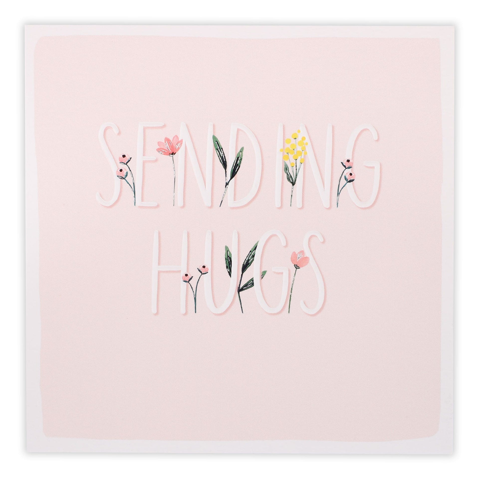 COVER MESSAGE: Sending Hugs. INSIDE MESSAGE: Just wanted you to know that I'm thinking of you. Size: 159mm x 159mm. PACKAGE SIZE: Standard Letter.