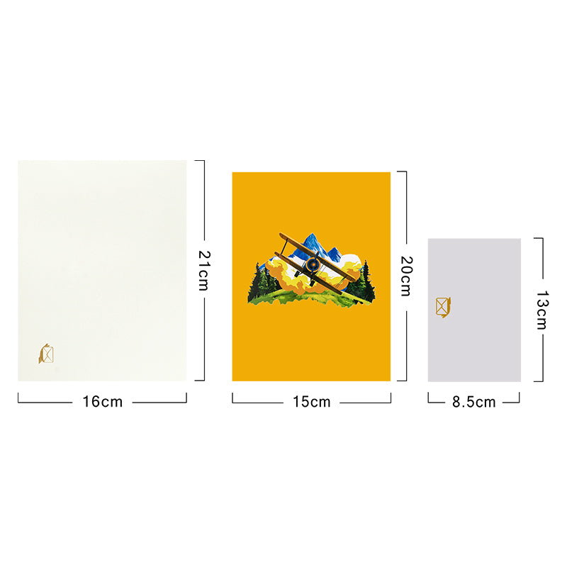Take to the skies with this 3D pop-up card featuring a vintage biplane flying above a majestic mountain range. The scene unfolds with trees, clouds, and rugged peaks, creating a sense of motion and adventure. The biplane is intricately crafted in bold yellow tones, giving it a nostalgic and uplifting feel. Measuring 15 x 20 cm, the card includes a white envelope (16 x 21 cm) and a blank insert (8.5 x 13 cm) for your personal message. Whether for birthdays, retirements, or encouragement, this card is perfect for anyone who dreams of flight or loves the spirit of exploration. Its layered paper engineering and scenic backdrop make it a keepsake worth displaying. Ideal for aviation enthusiasts and fans of vintage design.