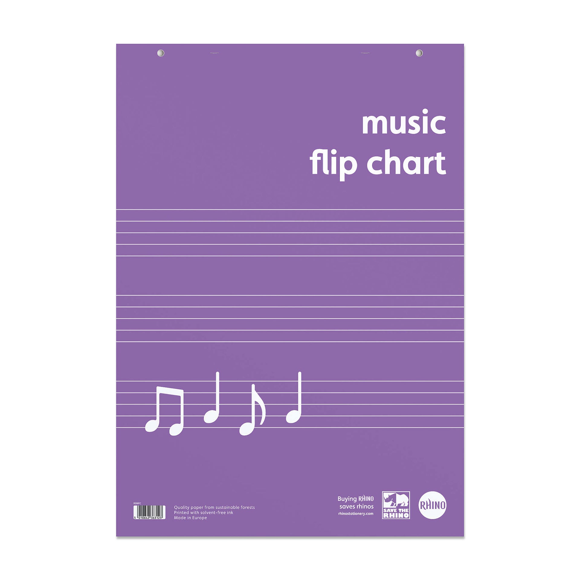 Great quality A1 pad (Approx. 850 x 600 mm) with 30 sheets of easel paper, each ruled with music manuscript 5 stave. These filp chart pads are ideal for learning and teaching music. RHINO A1 Educational Music Flip Chart Pad 30 Leaf, FCM20/B. Learn and teach music in an A1 format that s big, bold, and exciting for young minds to work on. Ruled with 5 music staves on one side and blank on the reverse. Let learning shine through with premium education-standard 80gsm smooth white paper. A place to hang your music and notes with two pre-punched holes to match standard easels. Help Save the Rhino with our regular donations to the UK charity over 100,000 since 2006. Market-leading RHINO brand. 100% recyclable. Printed using solvent-free, water-based inks. Paper sourced from sustainable European forests. Made in EU.