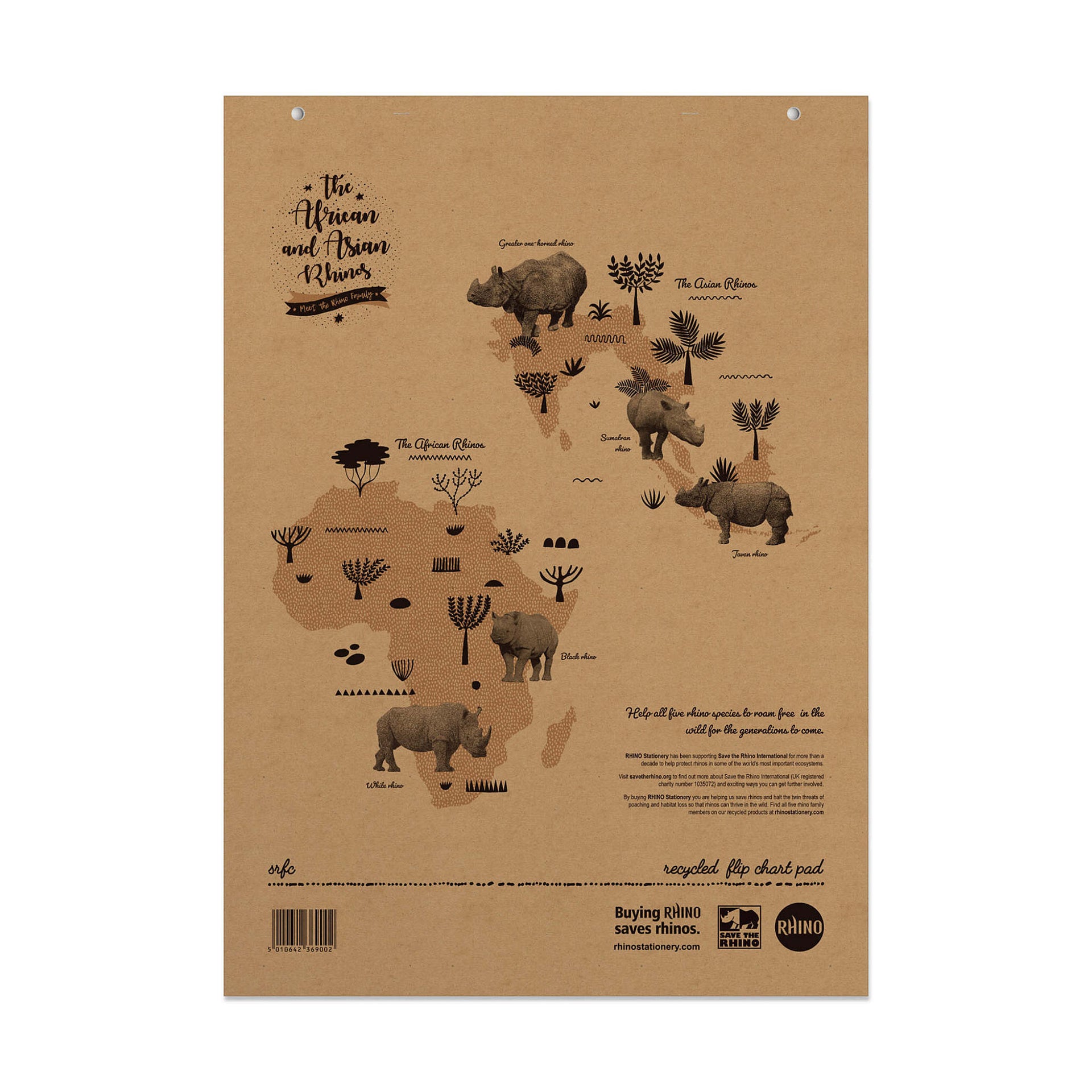 Great quality A1 recycled pads (approx. 810 x 580 mm) with 40 leaves of easel paper. These flip chart pads are made from 100% recycled paper materials and are ideal for doing presentations. RHINO A1 Recycled Flip Chart Pad 40 Leaf, S20/B. A1 (approx. 810 x 580mm). Ruled with 20mm squares on one side and blank on the reverse. Protect the environment with 100% recycled paper materials. Let the wilderness be your inspiration with a fun illustrated cover and fascinating rhino facts. 100% recyclable. Printed using solvent-free, water-based inks. Made in EU.