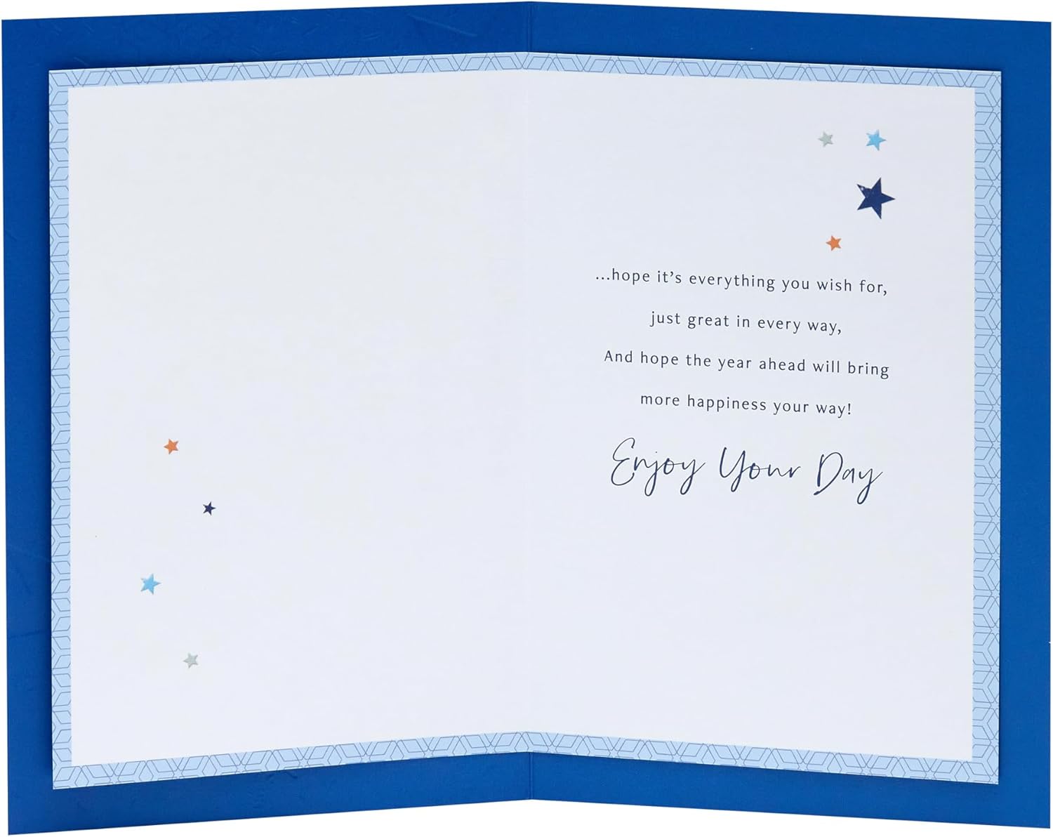 Send birthday wishes to your brother with this starry card featuring thoughtful sentiment and accented with gold embossed foil elements. Message Inside Reads: ...hope it's everything you wish for, just great in every way, And hope the year ahead will bring more happiness your way! Enjoy Your Day Card Size: 13.7cm x 21cm | Envelope Included