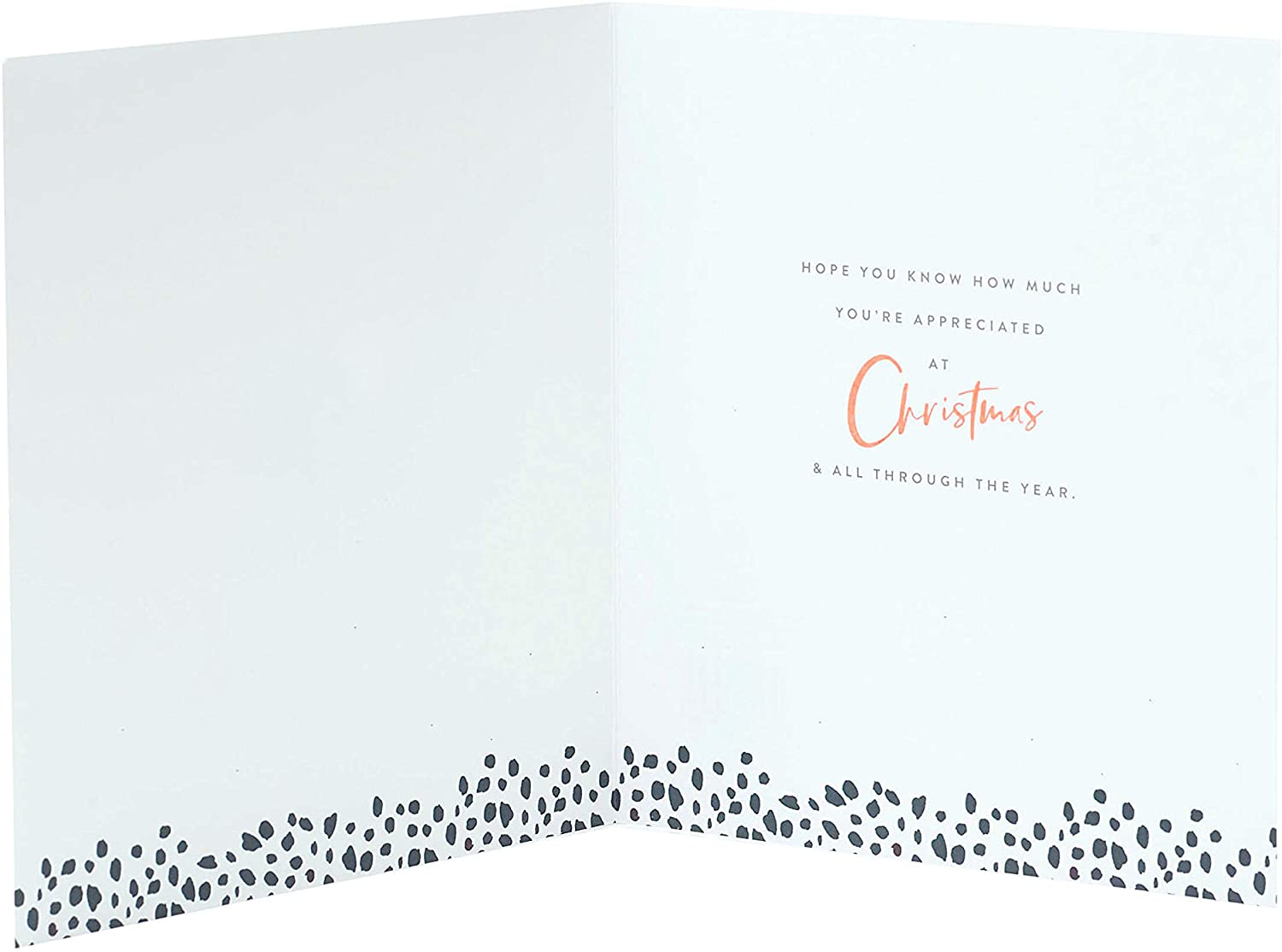 Celebrate Christmas in style with this gorgeous Christmas card for someone special in your life. The stunning, hand-finished design is decorated with foil and sequins, and features a warm message of appreciation inside. This really is the perfect Someone Special Christmas card. Envelope Included. Card Size: 159mm x 184mm. Editorial inside reads: Hope you know how much you're appreciated at Christmas & all through the year.