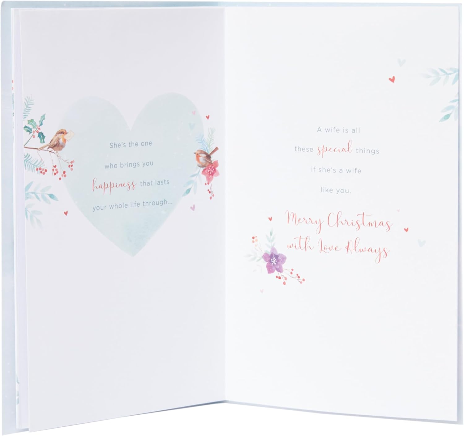 Remind your wonderful wife just how much you love her with this classic and heartfelt Christmas card, featuring two festive robins. Message Inside Reads: Who fills every moment of Christmas with her warm and loving ways... Card Size: 14.9cm x 22.9cm | Envelope Included