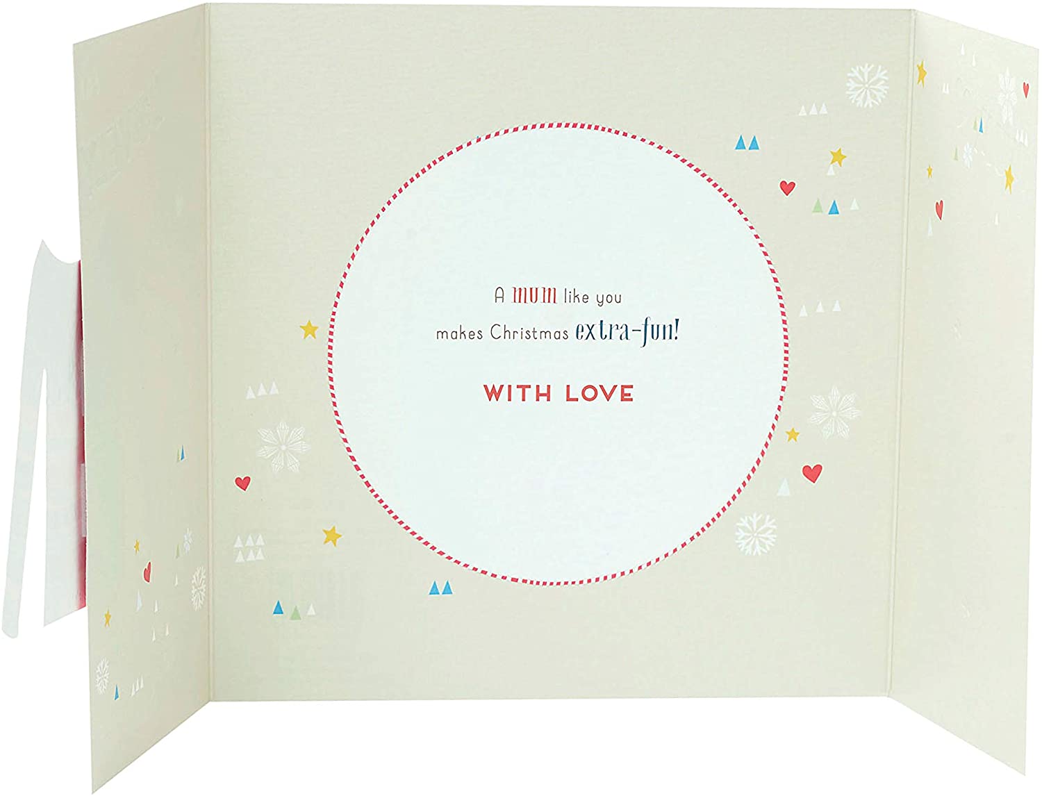 This bright and fun Mum Christmas card features a sweet message and a Christmas jumper, complete with real pom poms! Editorial inside reads: A mum like you makes Christmas extra-fun! With Love. Envelope Included. Card Size: 186mm x 186mm
