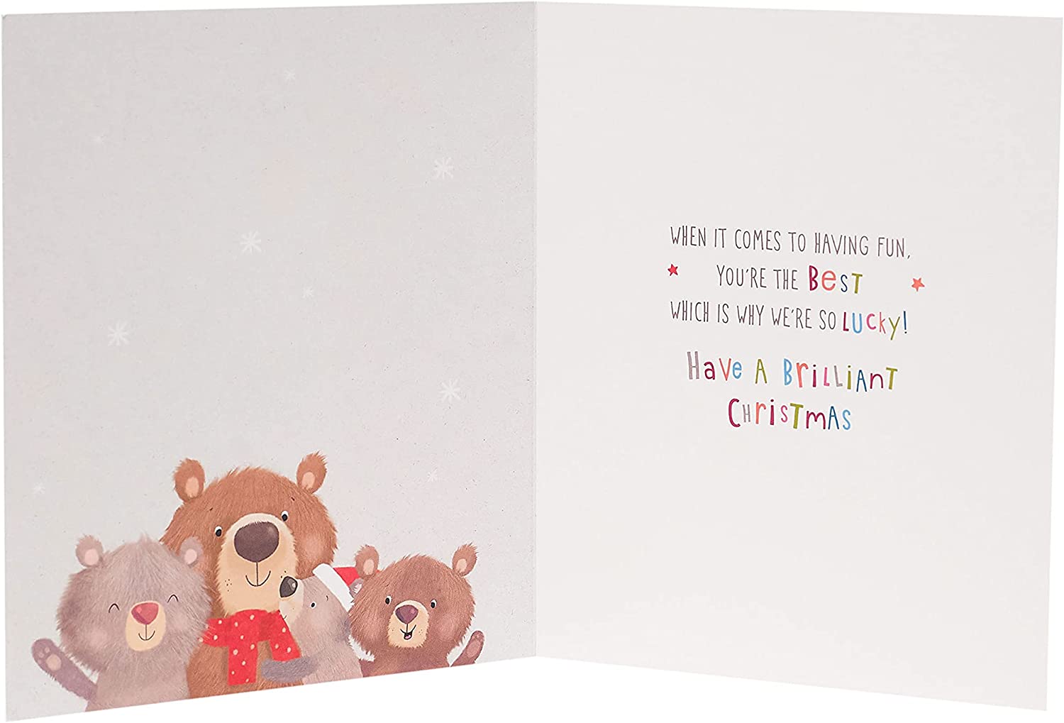 Send Christmas wishes and lots of love from the grandchildren with this cute Percy & Peggy card, finished with metallic red foil. Message inside reads: When it comes to having fun, you're the best which is why we're so lucky! Have a Brilliant Christmas. Envelope included. Card size: 159mm x 184mm.