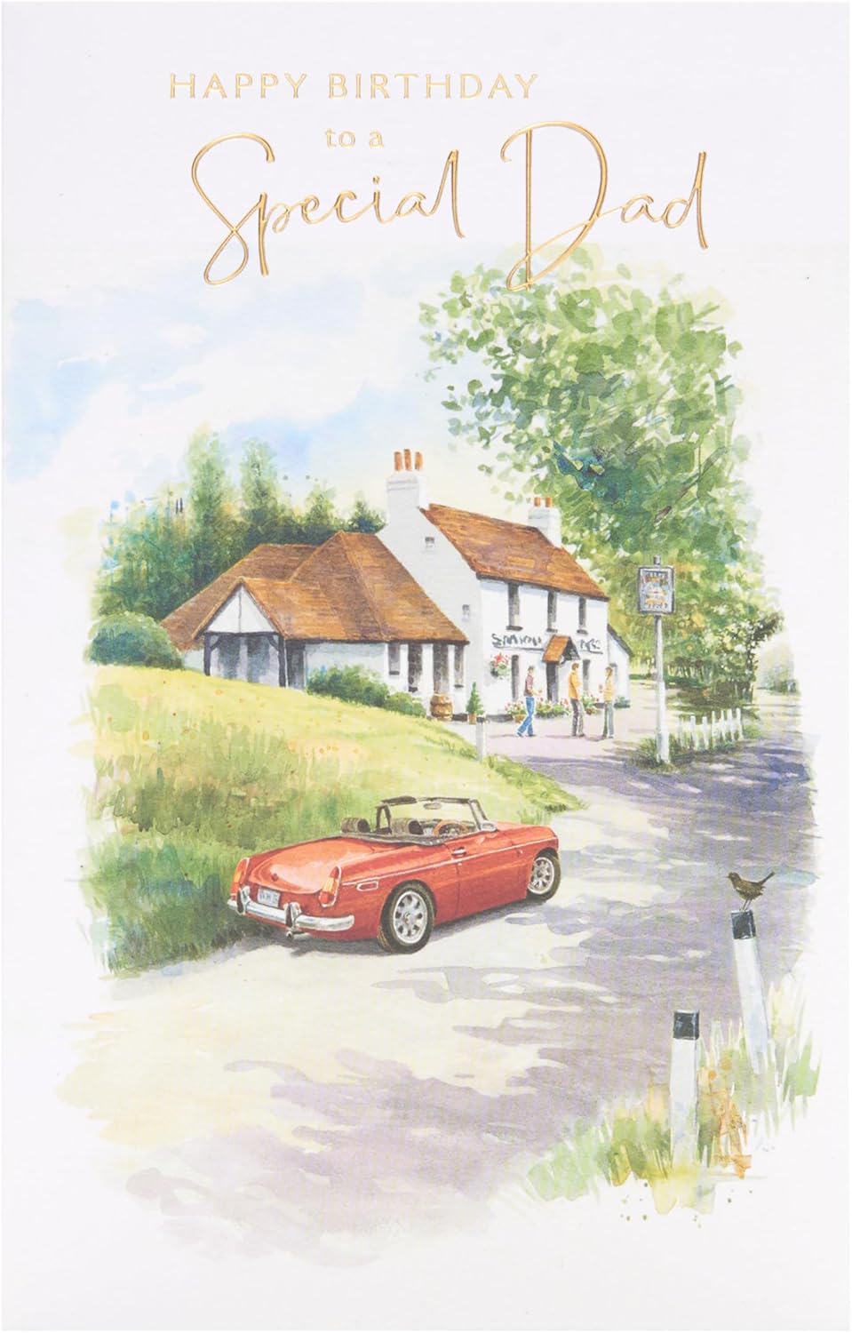 Wish him a relaxing day with this Dad birthday card, featuring a village pub and car design, printed on premium quality board, and finished with gold foil. Message Inside Reads: It's time for some relaxing in your very favourite way, so enjoy every moment of your very special day! Have a Wonderful Birthday Card Size: 149mm x 229mm | Envelope Included