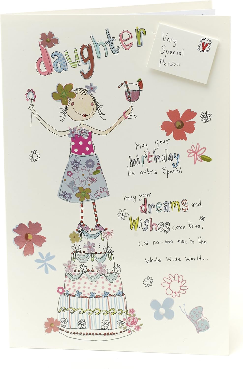 Wish your daughter all the happiness she deserves on her birthday with this fun card, which features a cute tiny card with an extra message. Inside Message: …deserves it more than you!! Have a lovely Birthday!! Envelope Included. Size: 149(w) x 229(h)
