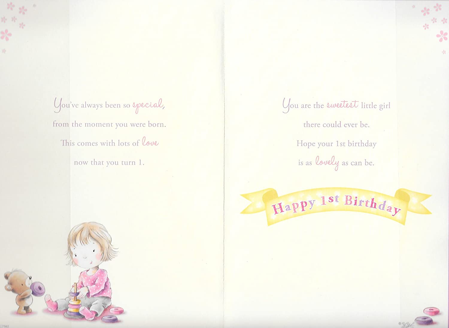 Today You're 1 Little Girl and Bear Playing With Toy Design Daughter Candy Club Birthday Card