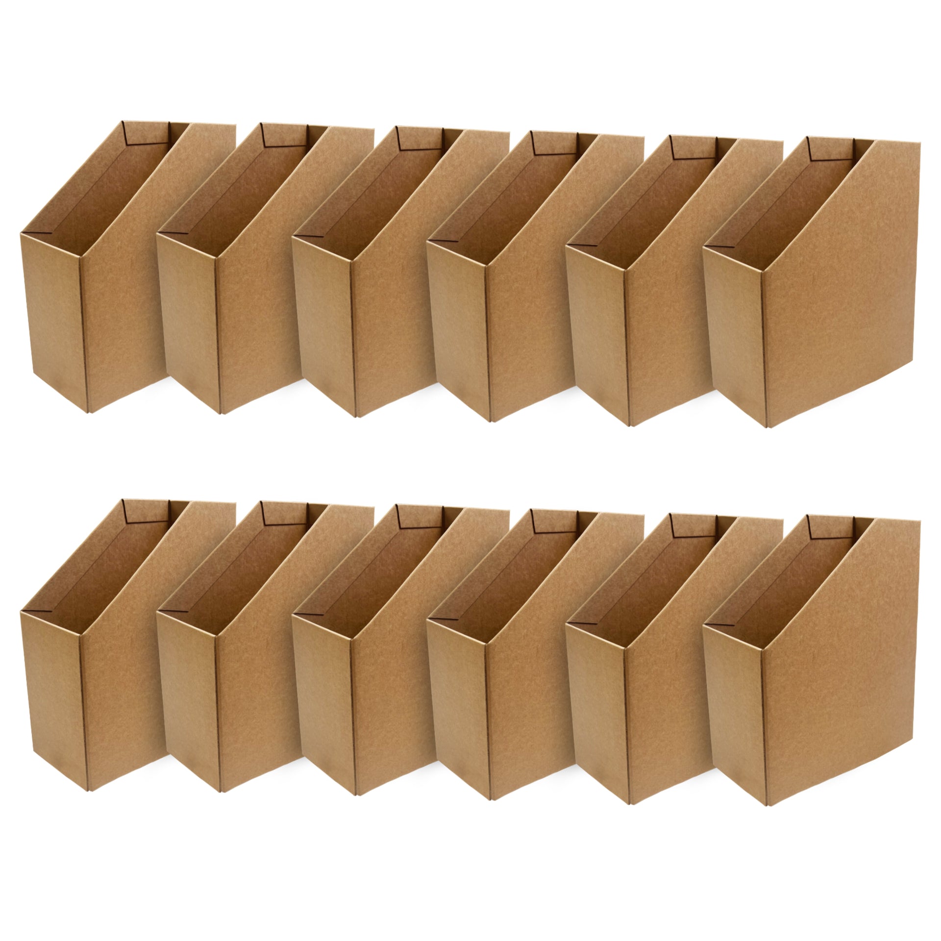 Pack of 12 Kraft Magazine Files Corrugated Cardboard Desk Organiser