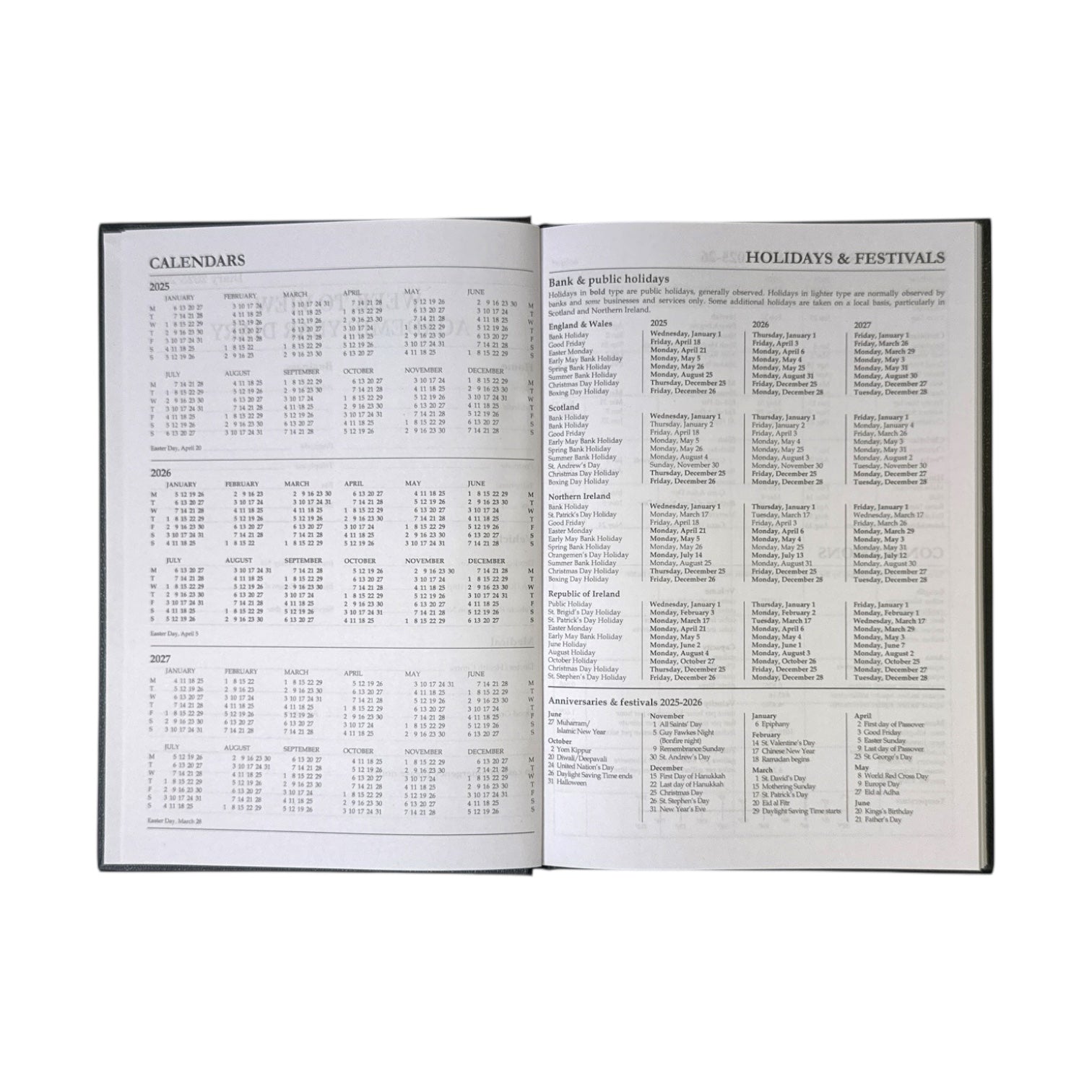 Academic Diary Week To View A5 Burgundy 2025-2026 by Janrax. Ideal for students, teachers or anybody working in the education sector, this academic A5 diary runs from July 2025 to July 2026 with a week to view format with ample space for noting down assignments, deadlines, meetings and appointments. The diary includes reference calendars on each page and yearly planners at the front and back of the book. A ribbon marker helps you to find your place within the book.