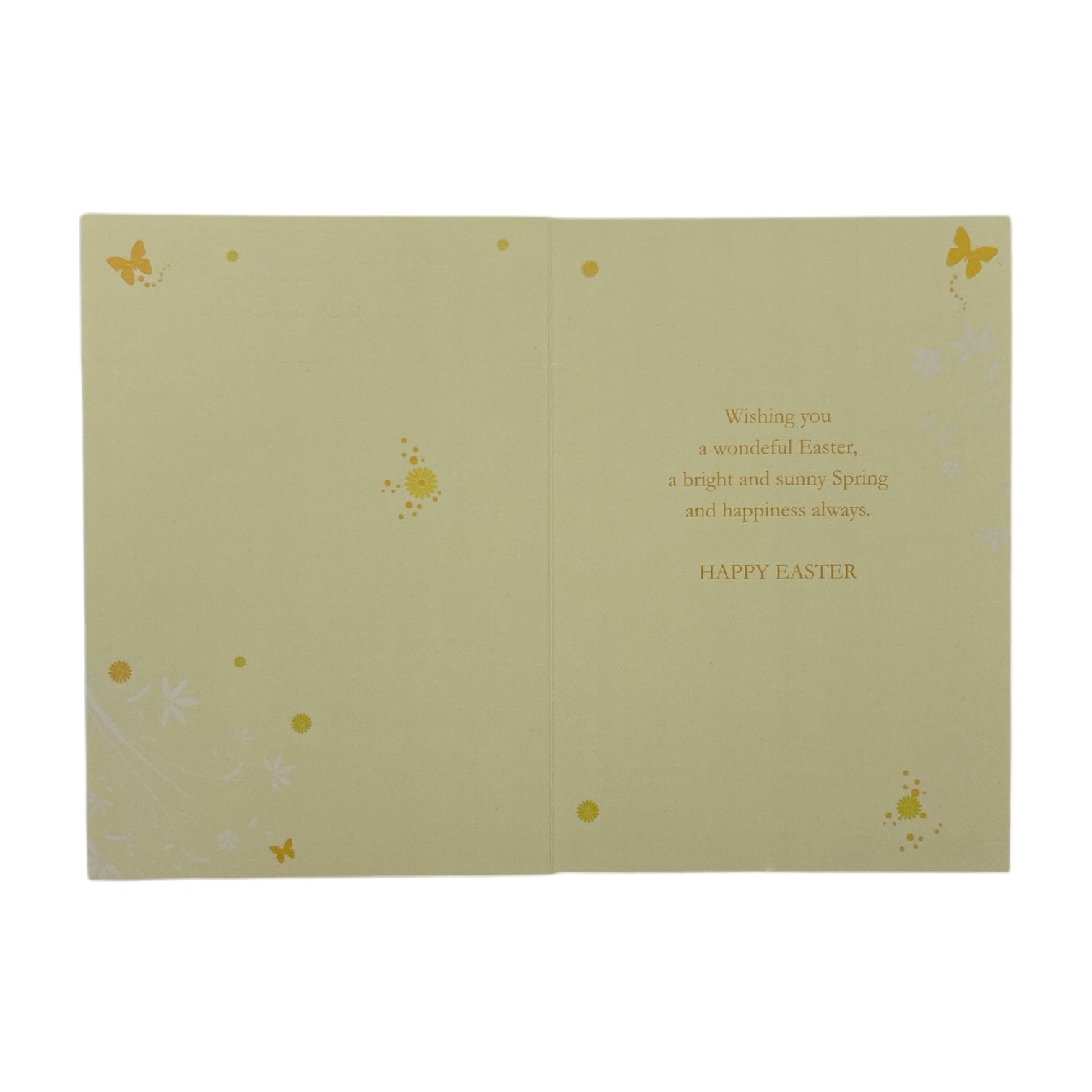 Celebrate Easter with your daughter by sending this beautifully designed greeting card. Featuring a lovely design of bright daffodils, symbolizing spring and new beginnings, this card captures the warmth and joy of the season. Enhanced with embossed details and shimmering foil accents, it adds an elegant touch to your heartfelt message. The front reads, "For You Daughter at Easter, Hope it is a wonderful," sharing your love and best wishes. Complete with a coordinating envelope, this card is a perfect way to express your love and warm Easter blessings. Card size: Approx. 19.5 x 14 cm.