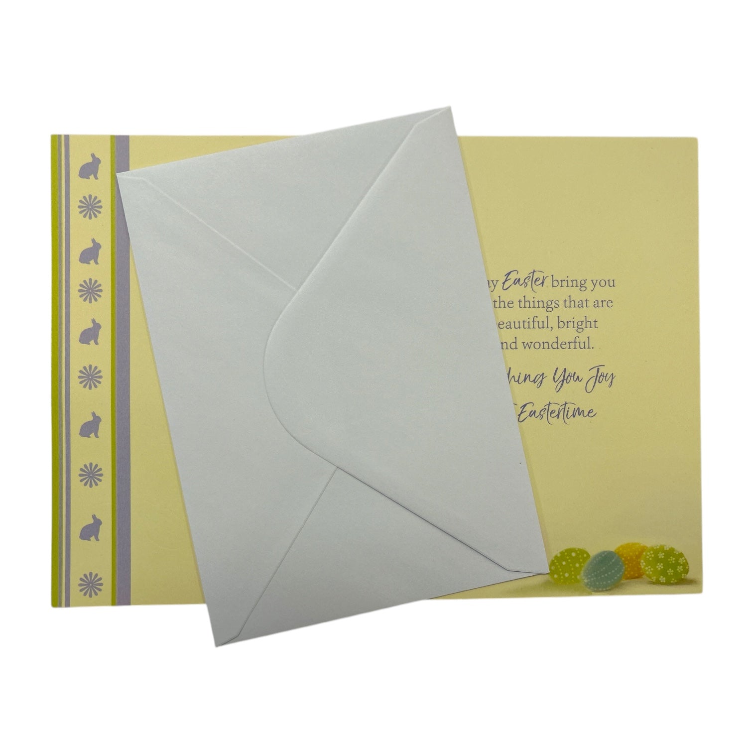 Celebrate the joy of Easter with this beautifully designed Easter card. Featuring a charming spring flower pot filled with vibrant, colorful blooms and decorative Easter eggs in lively patterns, this card perfectly captures the essence of renewal and festive cheer. Enhanced with embossed details and shimmering foil accents, it adds a touch of sophistication and elegance. With a warm and heartfelt message, this card is a wonderful way to share Easter blessings and love with the whole family. Complete with a coordinating envelope, it's the perfect way to spread happiness this season. Card size: Approx. 19.5 x 14 cm.