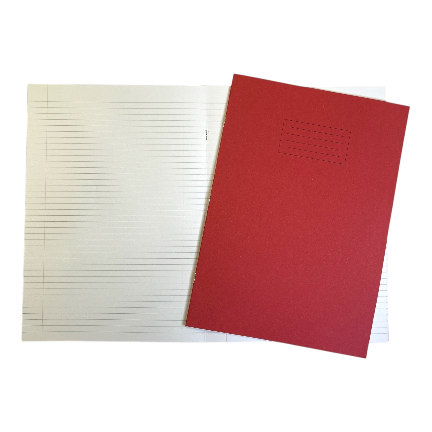 Janrax A4+ Red 48 Page Feint Ruled and Margin Exercise Book WF Paper with 225gsm Manilla Cover 240x340mm Workbook