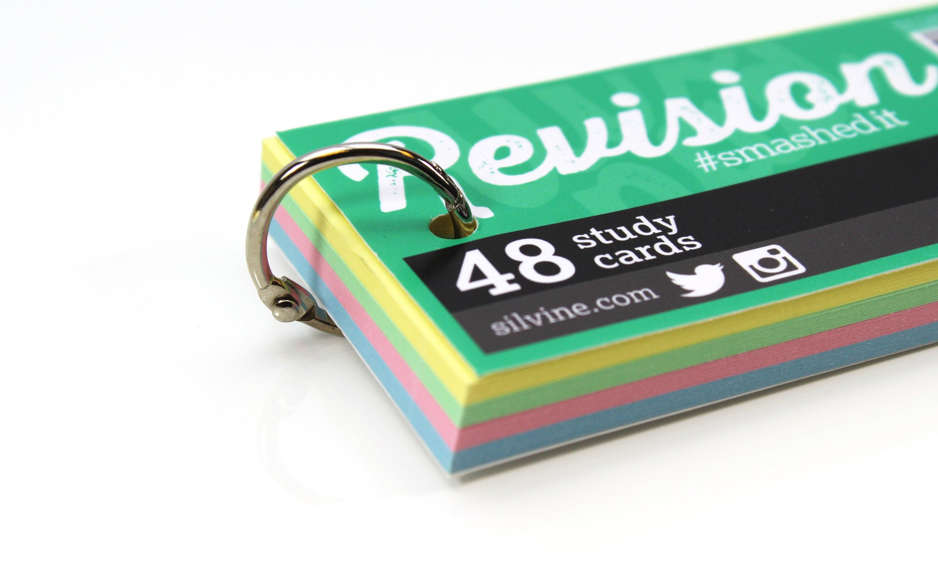 48 Mini Study Revision Cards on Keyring. Revision Study Cards measuring 50 x 100mm. Removable binding ring. Bound with a ring. 48 cards in 4 assorted colours. Ideal for writing revision notes.