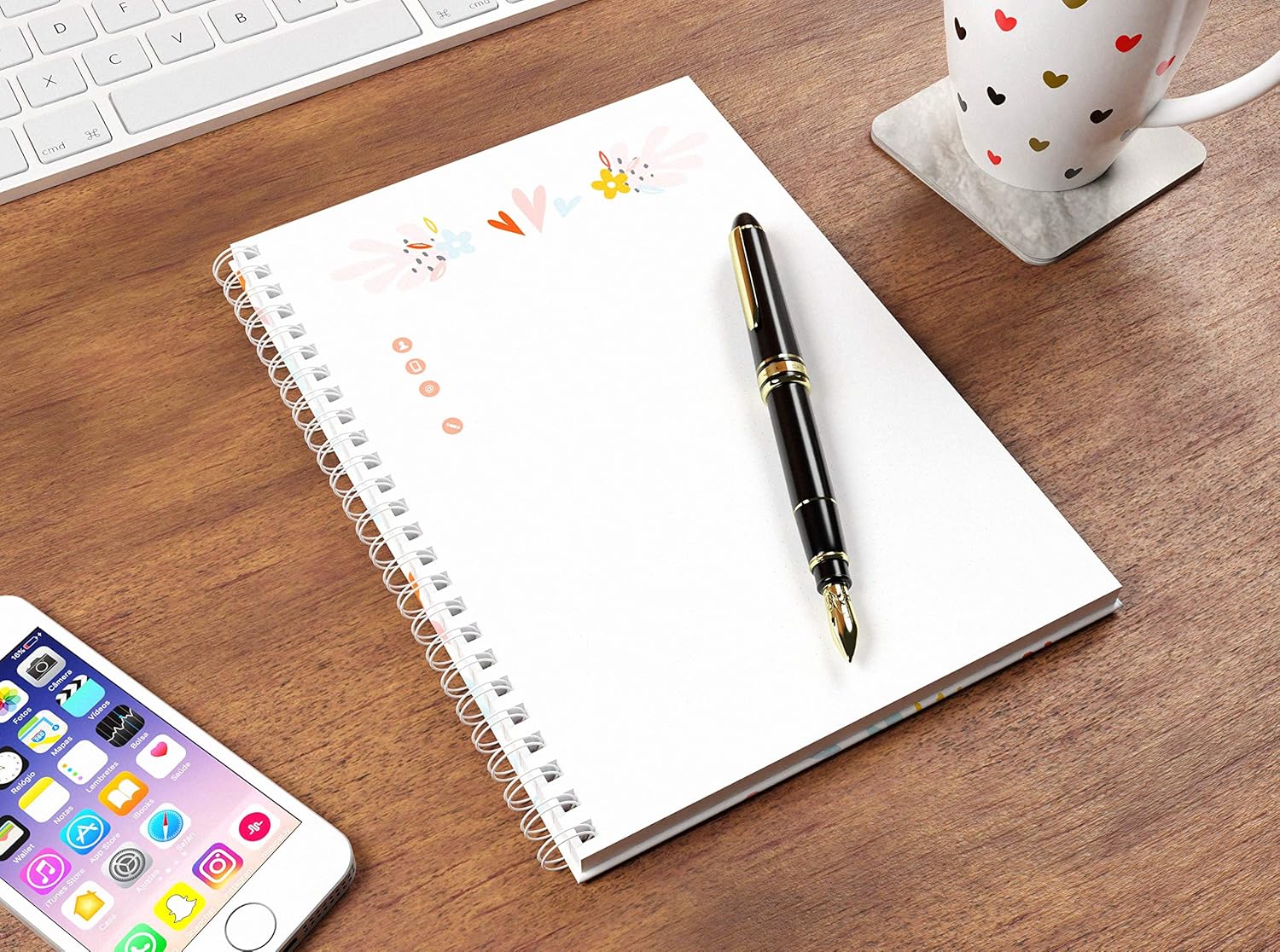 A4 140 Pages Twin Wire Floral Notebook. 75gsm 140 pages. 8mm feint ruled. Perforated. This A5 hardback notebook contains 140 pages of high quality 75gsm white paper, ruled 8mm feint and perforated for easy page removal. The wire binding allows the notebook to lay flat and makes page turning a breeze. It features a durable casebound cover, front and back with fashionable Marlene West design. This notebook also includes a stylish inner page for all your personal details should you ever lose or misplace your notes. Page dimensions 212 x 148 mm.