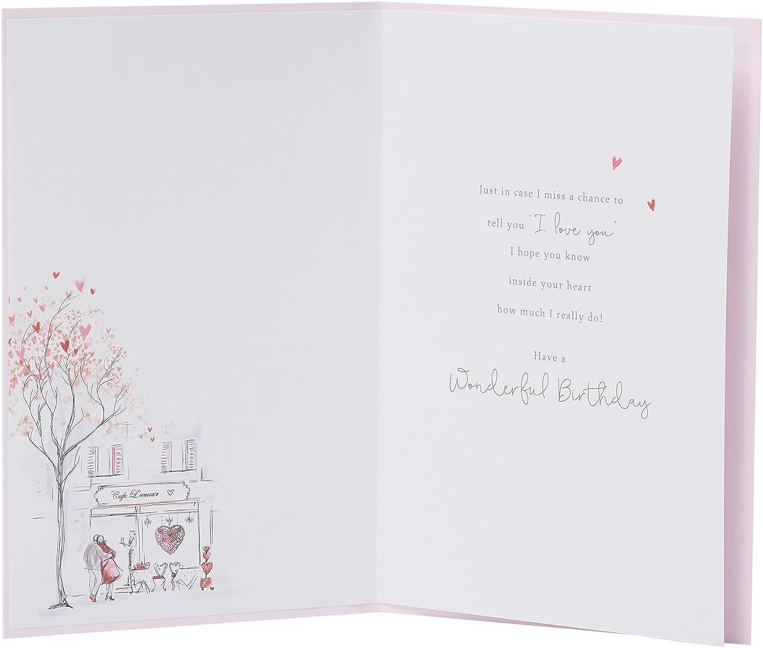 Remind them how much they mean on their birthday with this One I Love Card, featuring a heartfelt verse, silver and red foil detailing, finished with a raffia ribbon and bow wraparound. Message Inside Reads: Just in case I miss a chance to tell you 'I love you' I hope you know inside your heart how much I really do! Have a Wonderful Birthday. Card Size: 165mm x 254mm. Envelope Included.