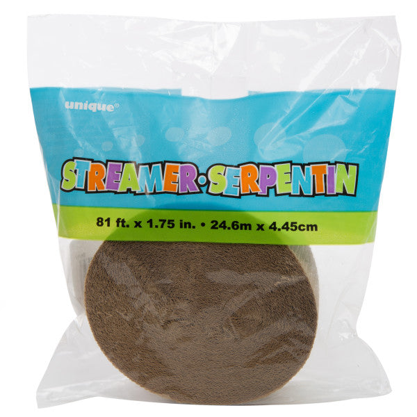81ft Gold Crepe Streamer. This classic crepe streamer design can easily mix and match with your other colourful decorations. This product is perfect for weddings, events, banquets, and decoration for parties. This product is made of quality crepe paper that is easy to assemble and use. Made with environment friendly crepe paper that is disposable and biodegradable. Size 81ft x 1.75inches.