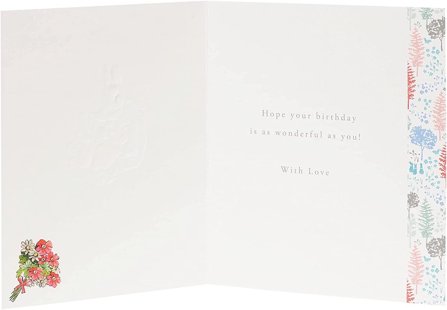 With delicate gold foil finishes, this beautiful Peter Rabbit birthday card is the perfect way to wish Grandma a wonderful day! Inside Message Reads: Hope your birthday is as wonderful as you! With Love. Card Size: 159 x 184mm. Envelope Included.