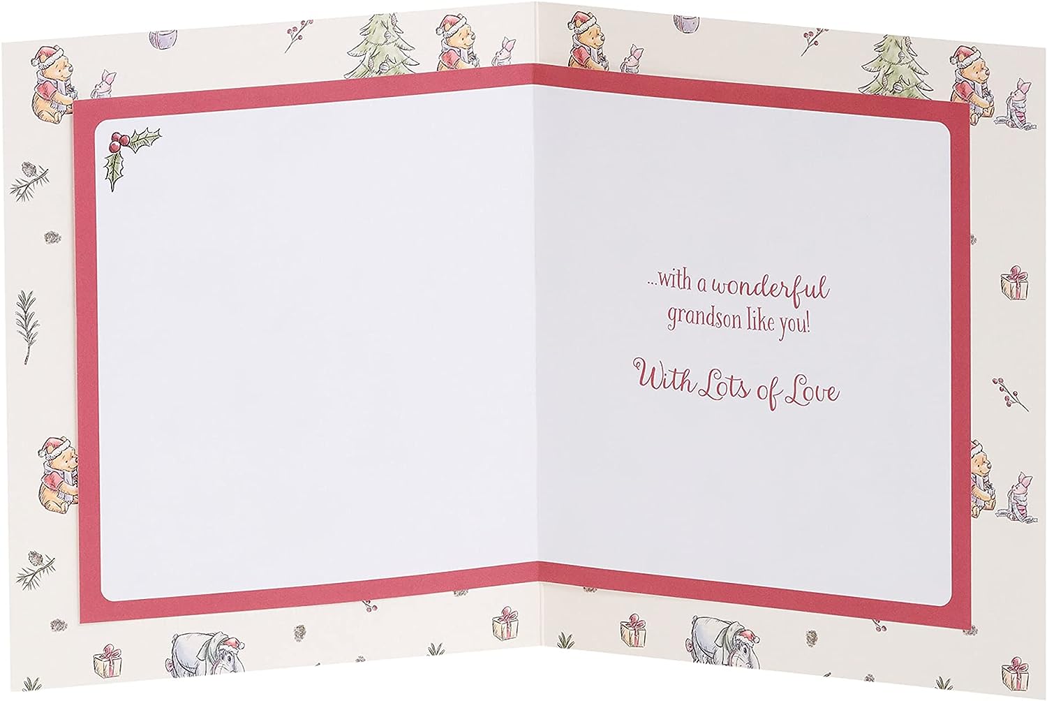 Wish your wonderful grandson a happy Christmas with this cute Disney Winnie the Pooh card, highlighted with silver metallic foil. Inside Message Reads: ...with a wonderful grandson like you! With Lots of Love For Grandson. Card Size: 159mm x 184mm. Envelope Included.