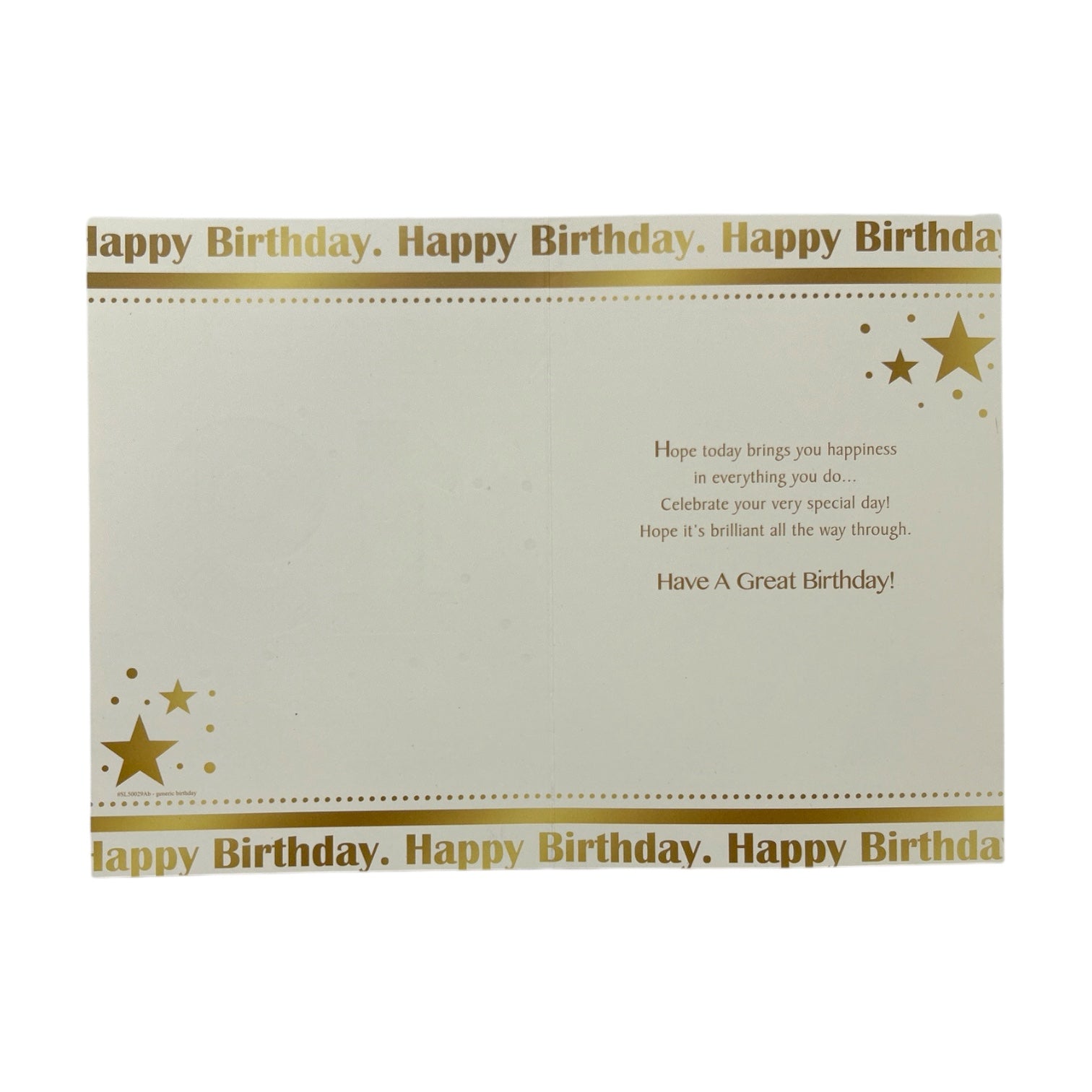 The card features a stylish beige or off-white background with gold typography. The number "19" is prominently displayed in a bold, patterned font. Surrounding it, the word "Nineteen" is repeated in different sizes and styles, creating a modern and dynamic design. Small stars and decorative elements add to the festive feel. It comes complete with a coordinating envelope. Card size: Approx. 19.5 x 14 cm.
