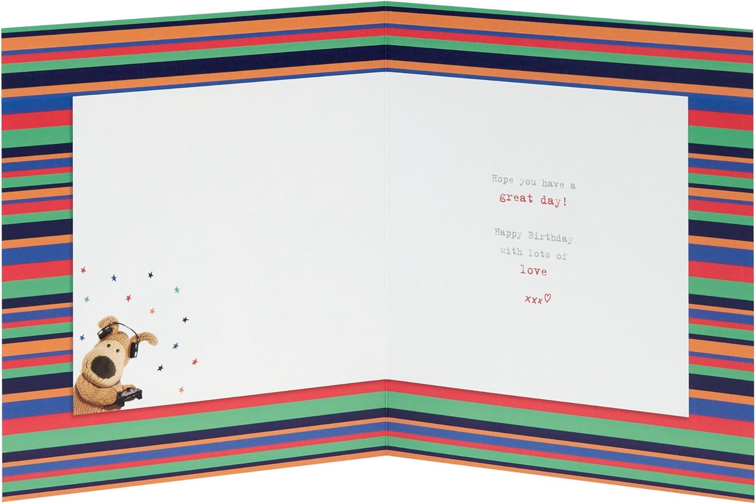 Send a brilliant nephew a happy birthday wish with the help of this cute card, featuring the adorable Boofle playing a game with headphones on, finished with gold foil details. Message Inside Reads: Hope you have a great day! Happy Birthday with lots of love Card Size: 15.9cm x 18.4cm | Envelope Included