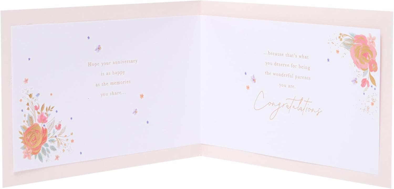 ANNIVERSARY CARD- Celebrate love and milestones with a thoughtful, heartfelt, or funny Anniversary card. Perfect for a 1st, 40th, 50th (Diamond) or 60th (Golden) wedding Anniversary, as well as relationship milestones. DESIGN - Wish your Mum and Dad a happy wedding Anniversary with this stylish landscape card. Featuring a champagne design, it’s finished with gold foil details. GIFT IDEAS- No matter the occasion, a well-chosen card will make anyone's day. From birthday cards to thank you cards, our collection offers something for every occasion. SIZE - This card measures 235 x 155 mm, ample space for a personal message, and a perfect size for displaying as a keepsake in your home