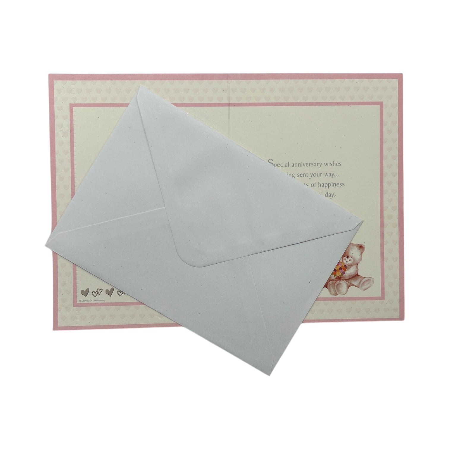 This charming anniversary card celebrates a Sister & Brother-in-Law's special day with warmth and affection. At its center, two adorable teddy bears embrace within a rich purple heart shape, symbolizing love and togetherness. The bears hold champagne flutes, adding a celebratory touch to the design. The heart is suspended from a delicate silver bow, elegantly adorned with small yellow flowers, enhancing its whimsical appeal. The background is a soft light beige, gently decorated with scattered small hearts for a romantic and heartfelt feel. Along the vertical edges, a decorative border featuring small flowers and hearts in shades of purple and beige adds a refined finishing touch. Inside, thoughtful anniversary wishes complete this beautifully designed card, making it a perfect keepsake for the happy couple. The card comes with a coordinating envelope. Card size: Approx. 19.5 x 14 cm.