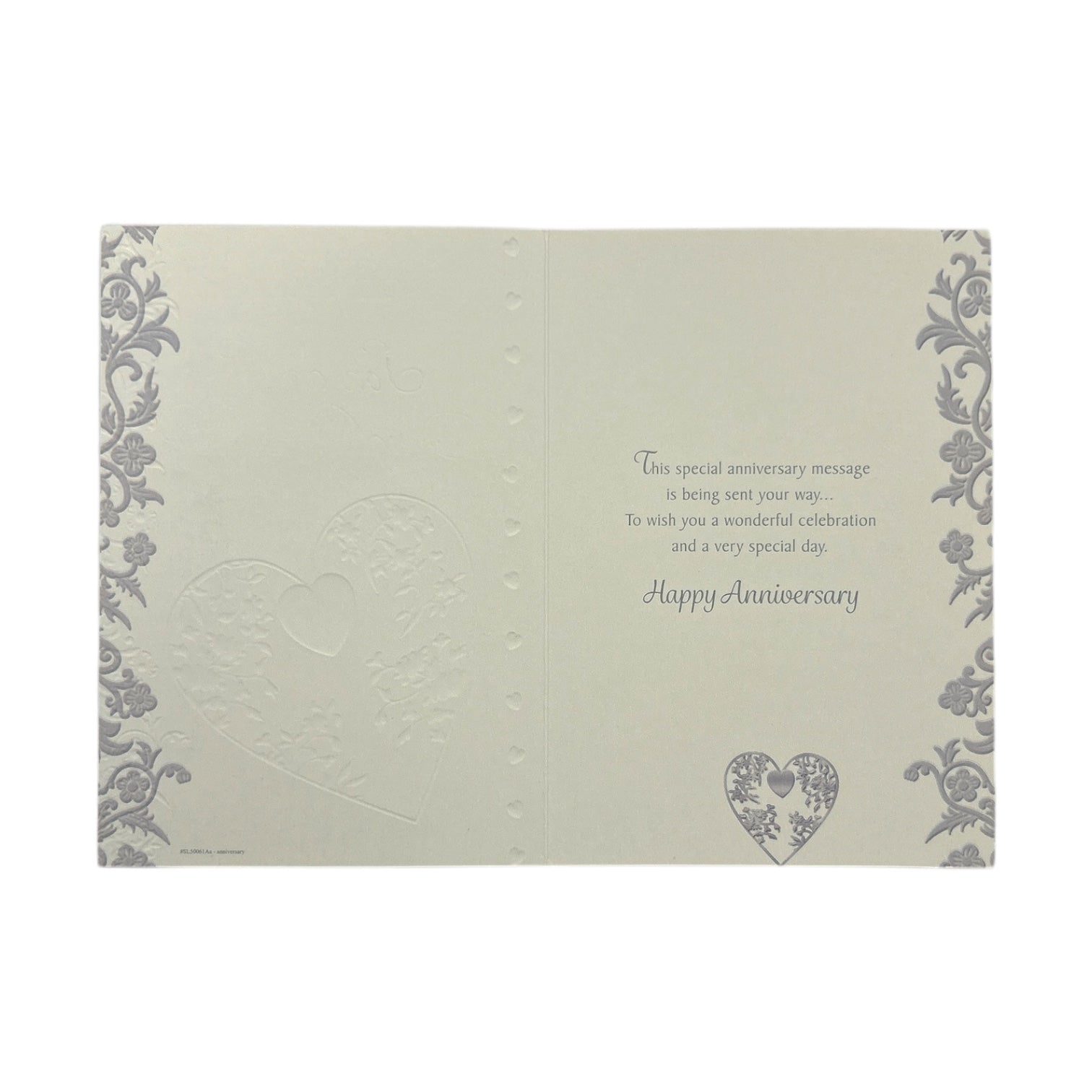 Son & Daughter-In-Law Traditional Silver Heart Floral Design Anniversary Wishes Card