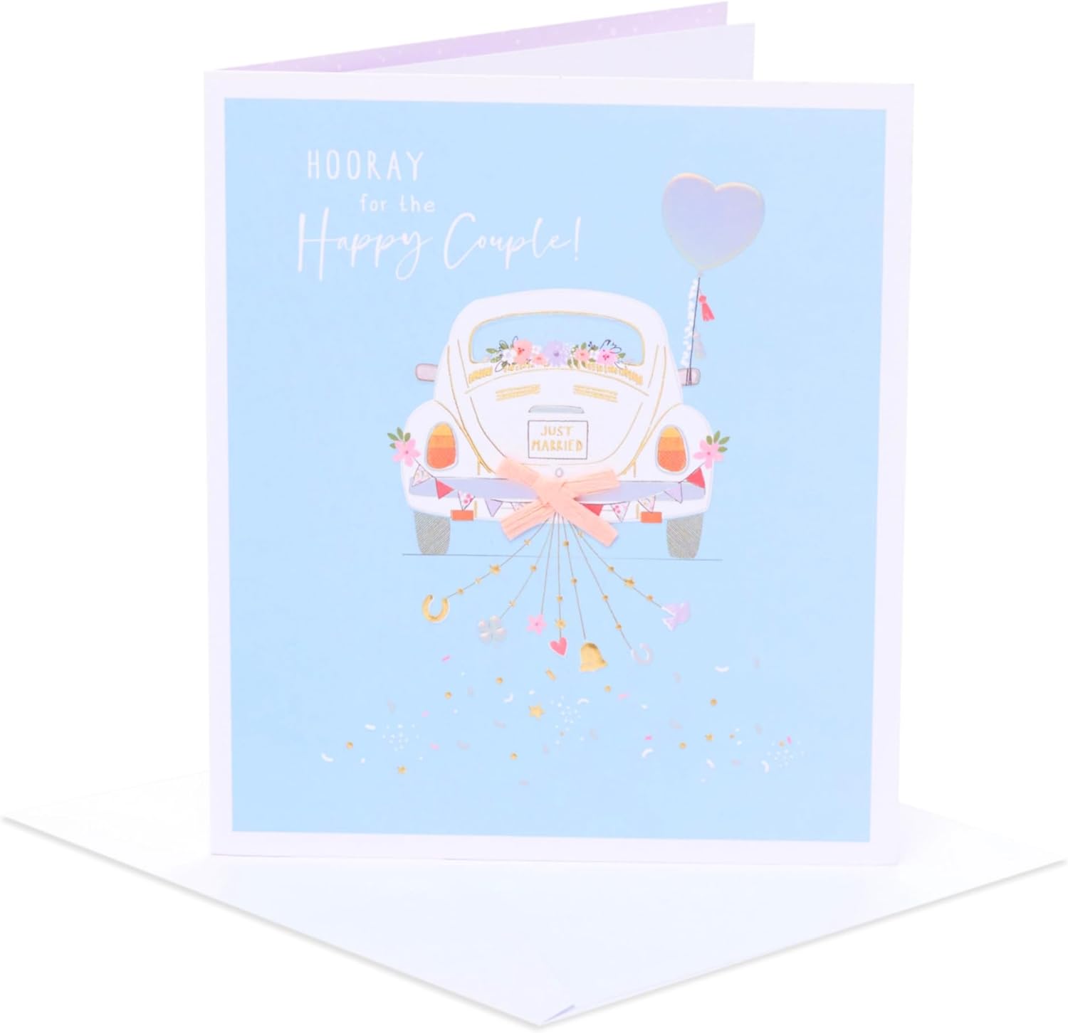 WEDDING CARD- Celebrate the joy of newlyweds with a heartfelt message wishing them a lifetime of love, happiness, and cherished memories. A perfect way to mark the bride and groom's special day. DESIGN - Celebrate the happy couple’s big day with this stylish and contemporary card. Featuring a wedding car design, it’s finished with gold and silver metallic foil, embossed details and a cute little bow. GIFT IDEAS- No matter the occasion, a well-chosen card will make anyone's day. From birthday cards to thank you cards, our collection offers something for every occasion. SIZE - This card measures 165 x 190 mm, ample space for a personal message, and a perfect size for displaying as a keepsake in your home.