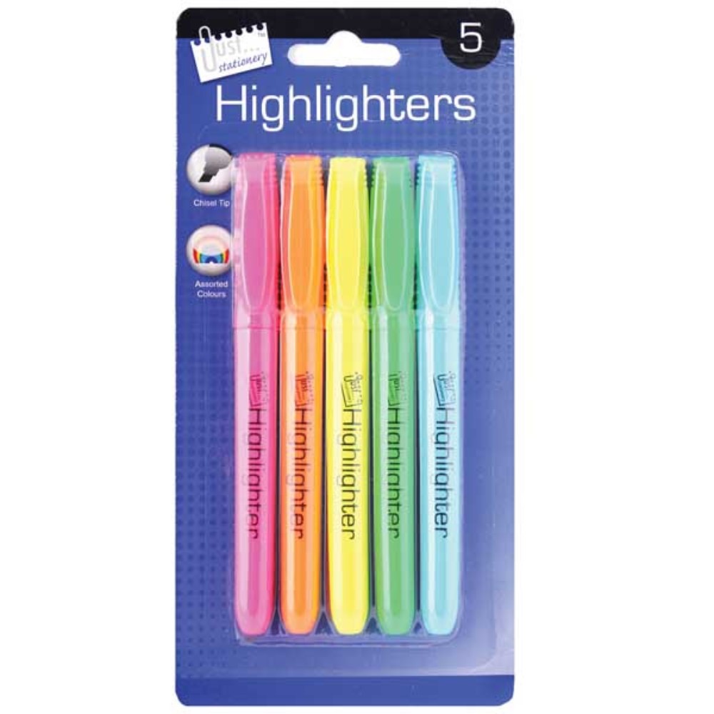 Just Stationery Bright Chisel Tip Highlighter (Pack of 5)