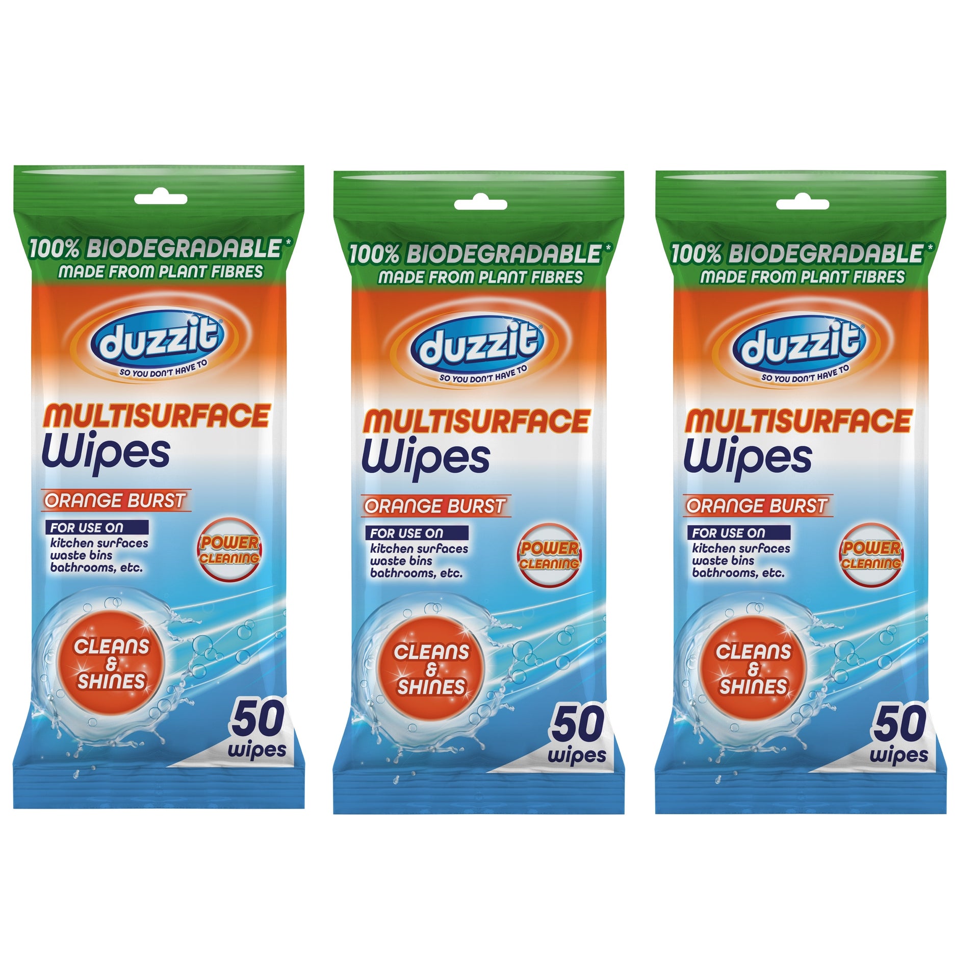 Duzzit Multisurface Wipes are perfect for use anywhere around the home, clean and shines in a single wipe. Duzzit wipes are lightly fragranced, leaving a long lasting fresh scent after use. Multisurface Wipes strong cleaning action eliminates dirt and grime from any hard surface, leaving your home and office hygienically clean for longer. 3 pack of 50 wipes will be supplied.