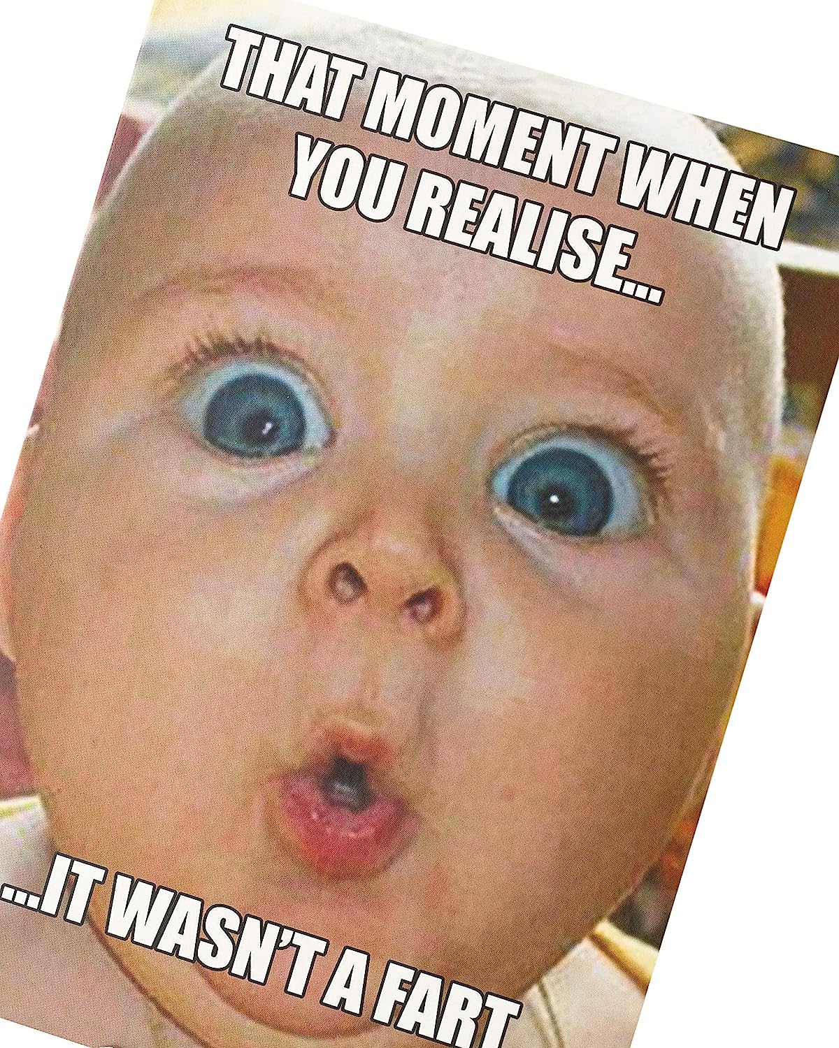 This birthday card takes inspiration from the world of memes, matching a shocked looking baby with perfectly pitched toilet humour to create a nappy full of fun! Inside Message Reads: Hope you get more than you expected this birthday! Card Size: 127mm x 178mm. Envelope Included.