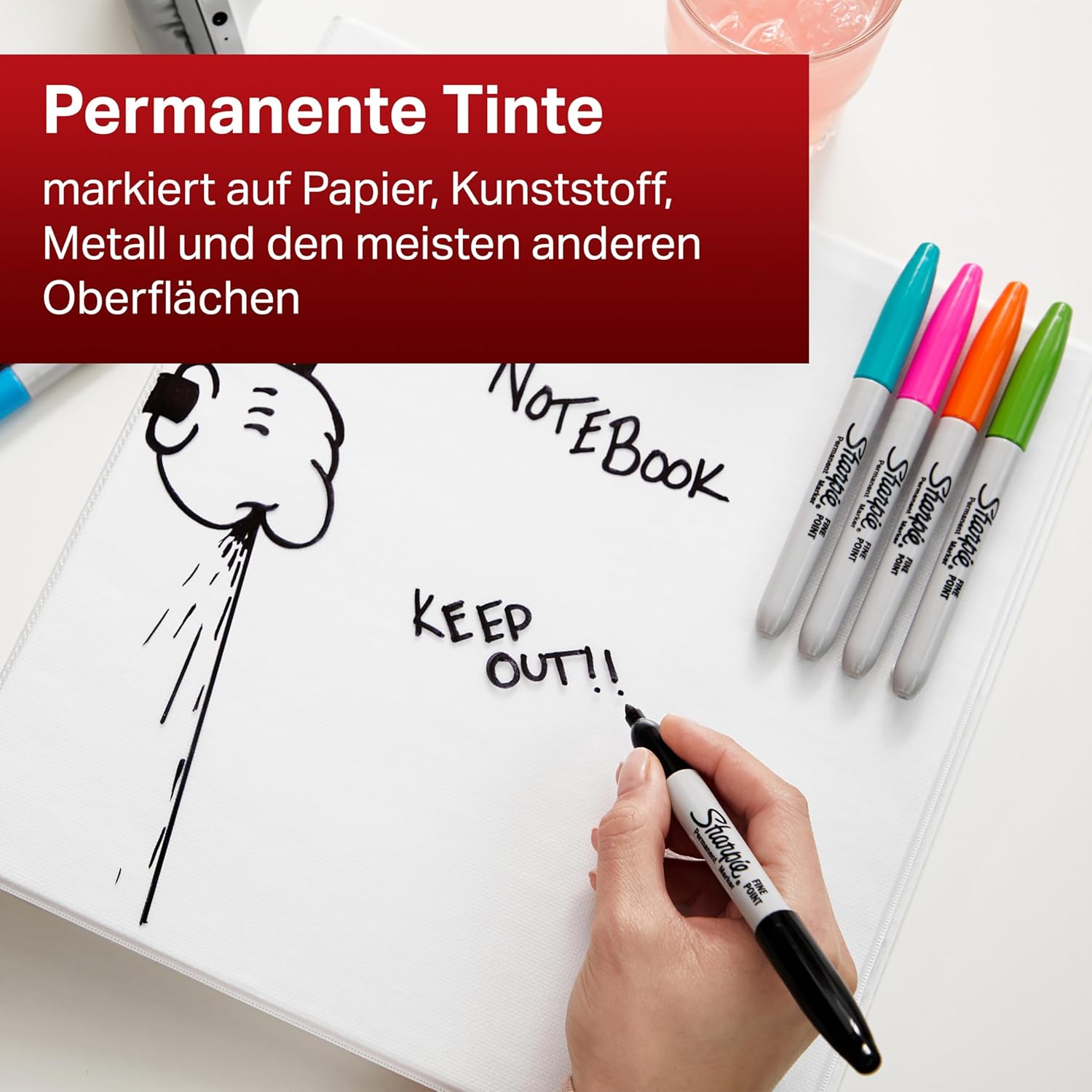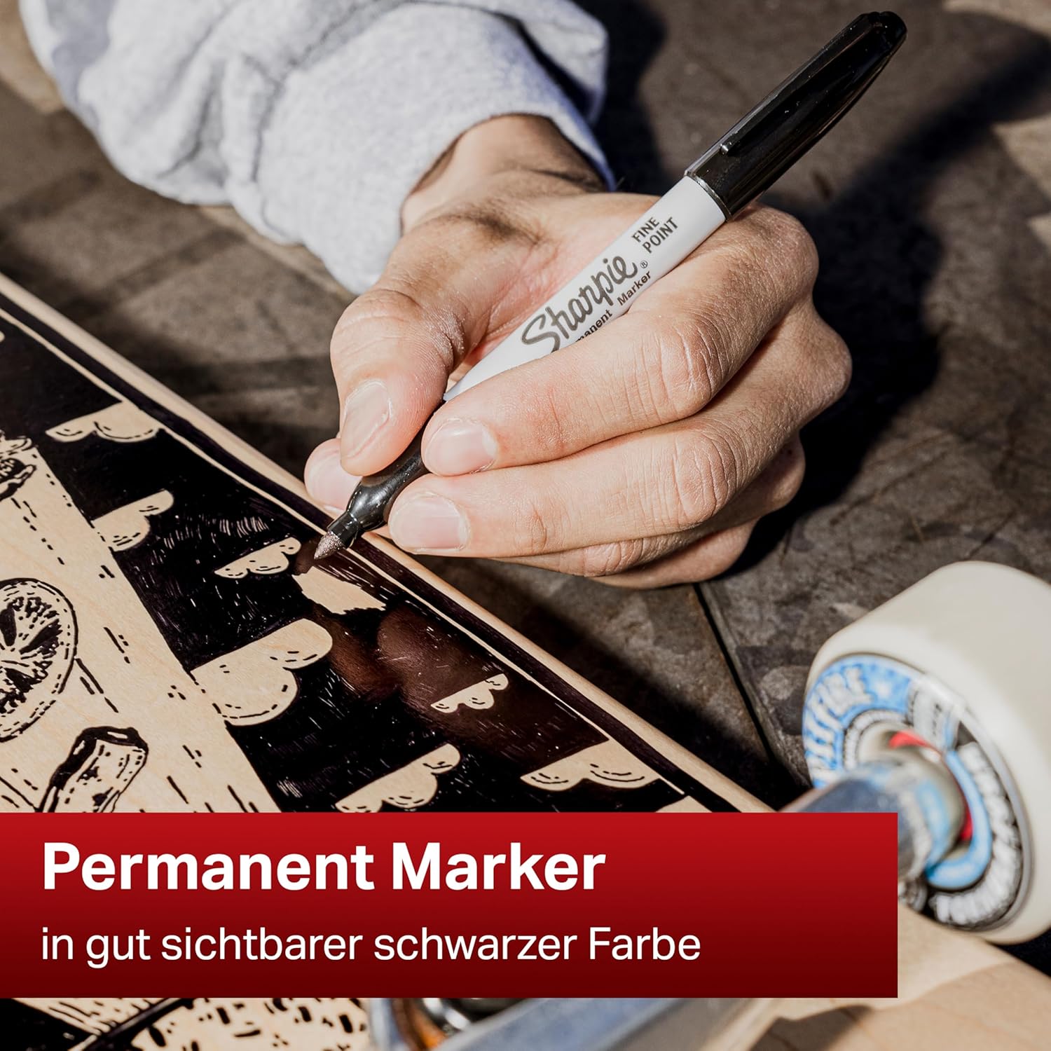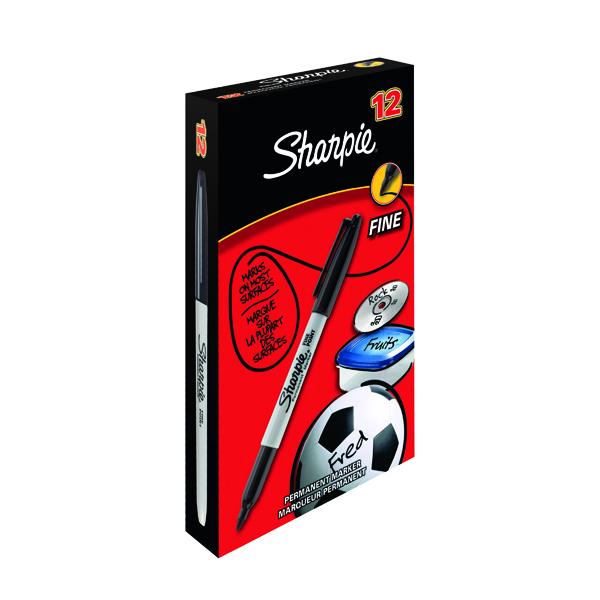 This Sharpie Marker has a fine nib, for precise, detailed, permanent writing on a variety of surfaces. The permanent ink is abrasion, UV ray and water-resistant, for long lasting clarity. This pack contains 12 markers with a black line width of 0.9mm.