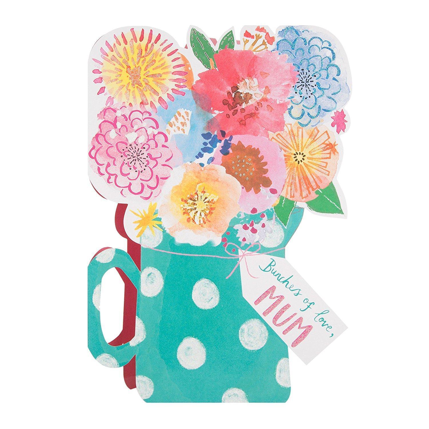 Send Mother's Day wishes to a special Mum with this floral card from Hallmark. Finishes: Glitter. Includes: Polka Dot Envelope. Royal Mail Postage: Standard Letter Size