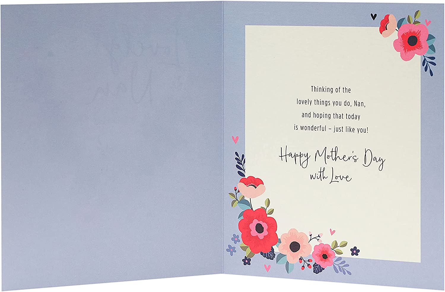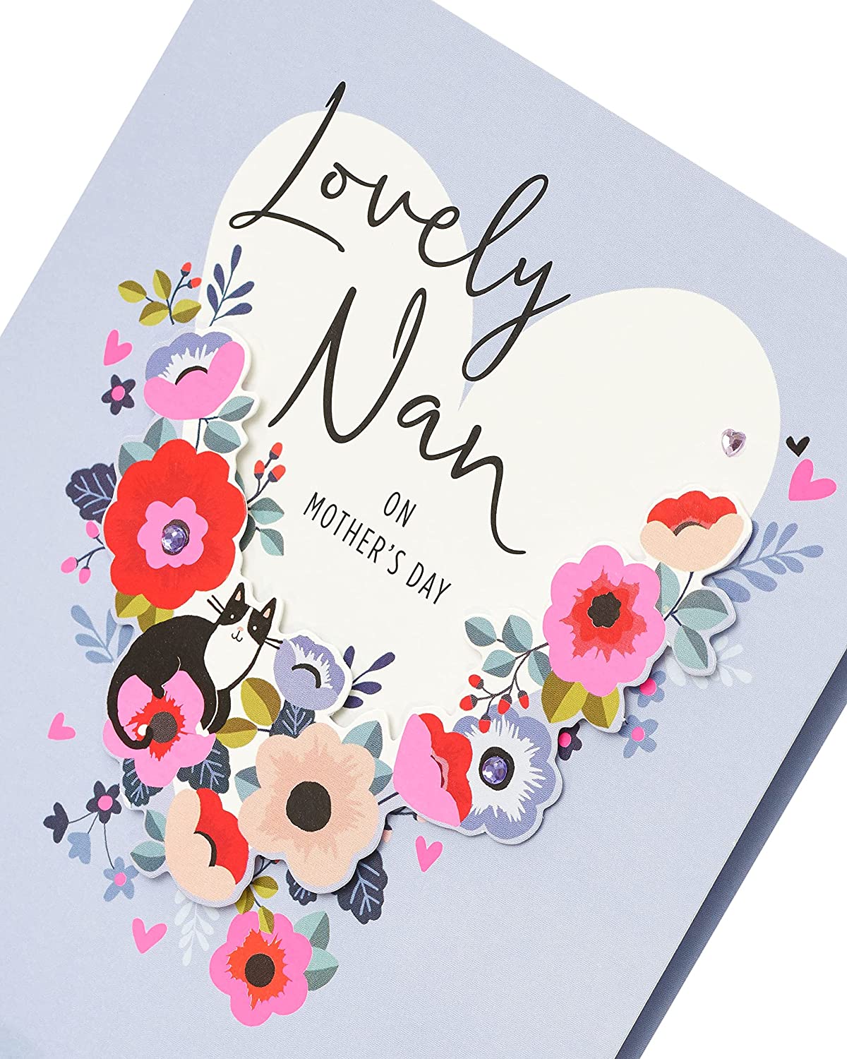 Send a message straight from the heart to a lovely nan this Mother’s Day with this bright and beautiful floral card which has 3D elements and a little cat! Inside Message Reads: Thinking of the lovely things you do, Nan, and hoping that today is wonderful Ð just like you! Happy Mother's Day with Love. Card Size: 159x184mm. Envelope Included.