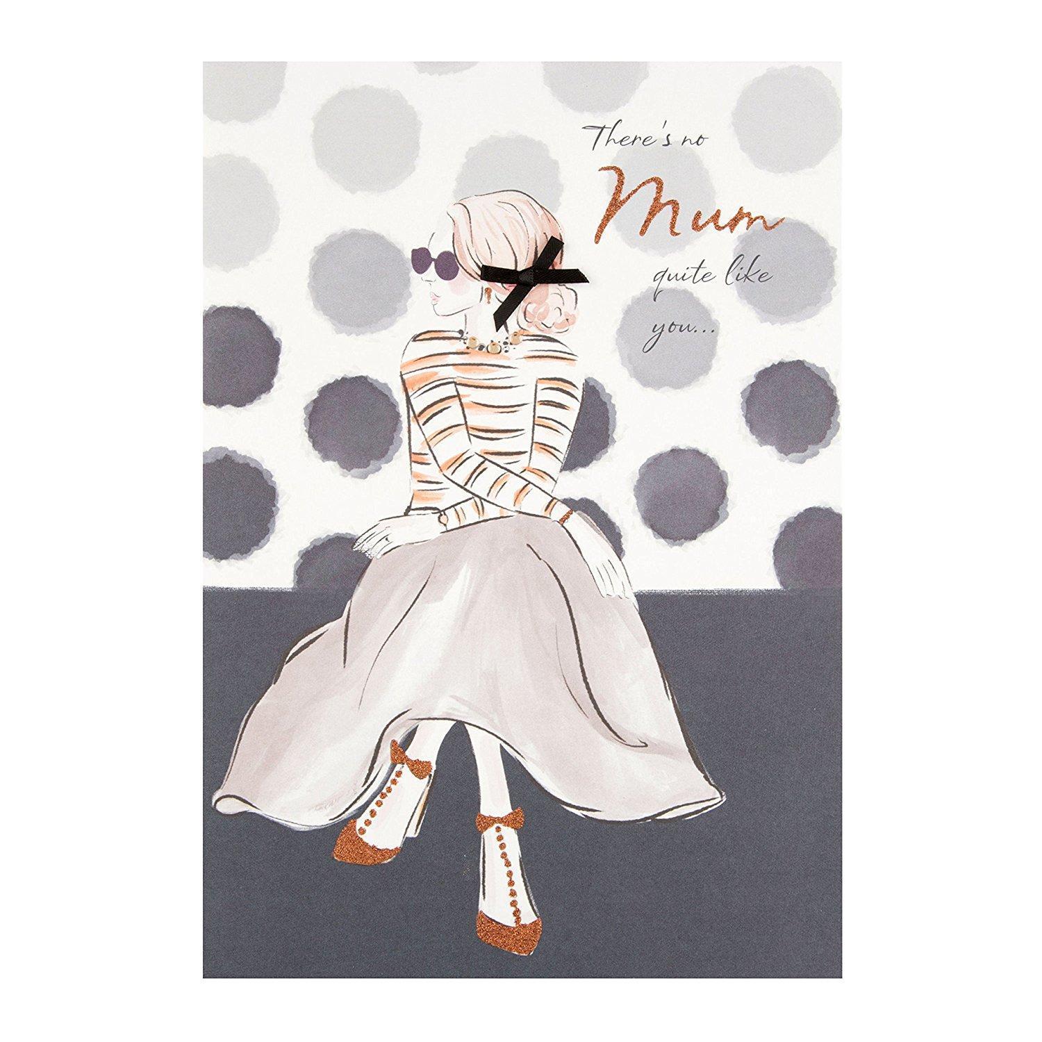 Send Mother's Day wishes to a special Mum with this contemporary card from Hallmark. Finishes: Glitter; Diamante; Ribbon. Includes: Striped Envelope. Royal Mail Postage: Standard Letter Size