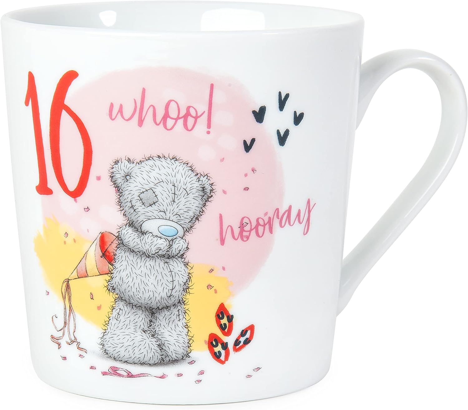 QUALITY CERAMIC MUG - featuring an adorable illustration of Tatty Teddy wearing a party hat, alongside the caption '16 - whoo! Hooray' FUN GIFT FOR A SWEET 16TH - whether you're choosing a gift for a best friend, girlfriend, daughter, granddaughter, sister or cousin, this cute mug and plush boxed set is certain to raise a smile! A cute little huggable size to keep on a bedside table or desk as a reminder of a special day. DISHWASHER AND MICROWAVE SAFE - mug can be washed by hand or placed in the dishwasher, and it's safe to use in the microwave for heating drinks.
