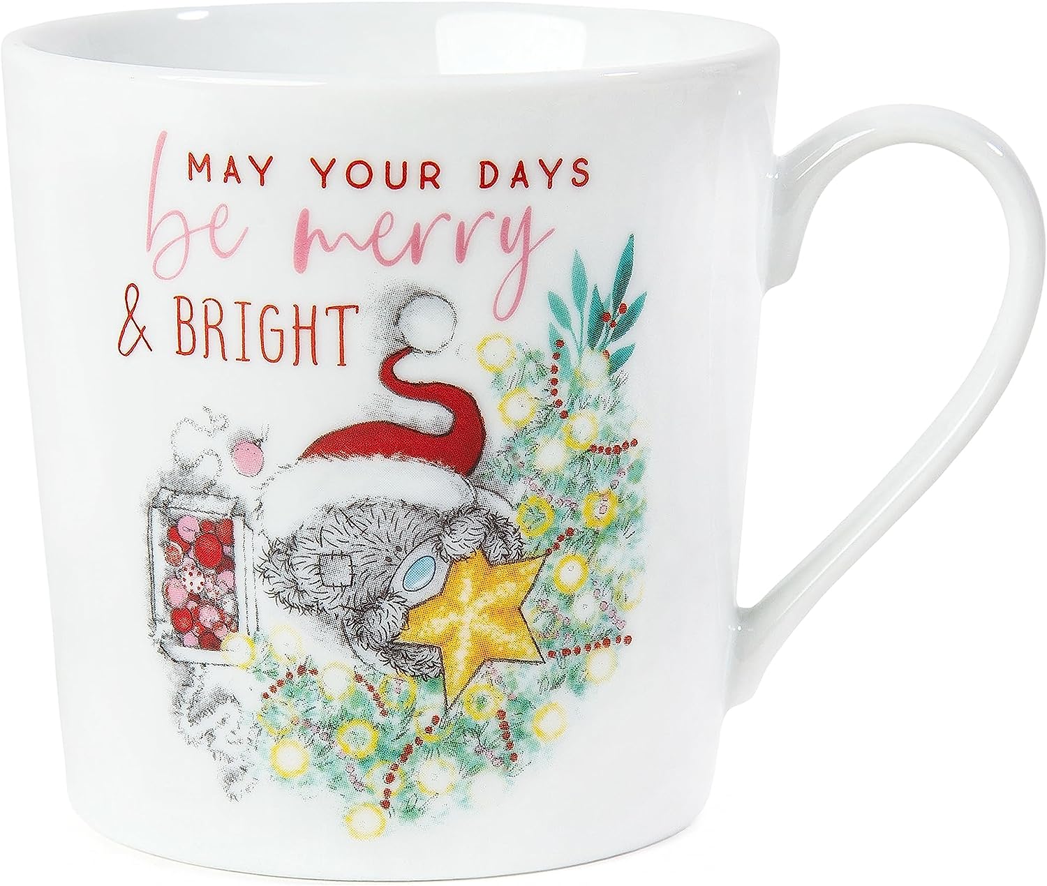 CUTE CHRISTMAS MUG IN A GIFT BOX - this high quality ceramic mug features the caption 'May your days be merry and bright' and an adorable image of Tatty Teddy holding a star for the top of the Christmas tree. ORIGINAL ME TO YOU DESIGN - both the gift box and the mug are richly decorated in gold, green and red with pastel pink highlights to give a beautiful blend of traditional and contemporary styles. ‎Dishwasher Safe.
